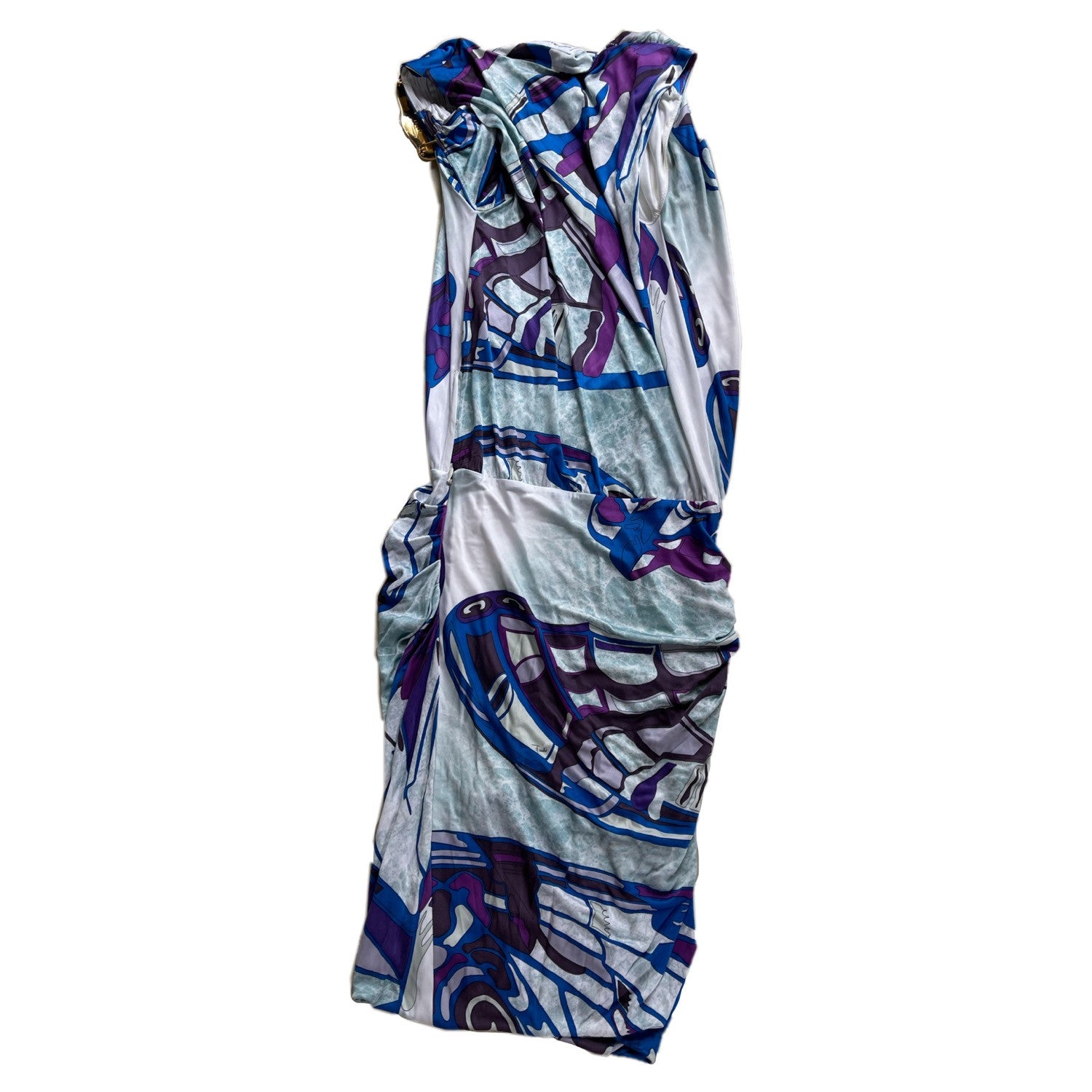Emilio Pucci Print Gold Brooch Bodycon Midi Dress