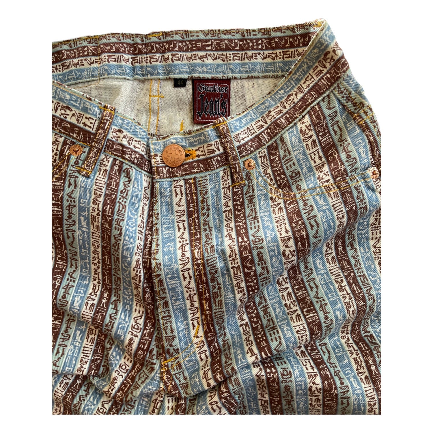 Jean Paul Gaultier Cryptic Writing Stripe Straight Leg Jeans