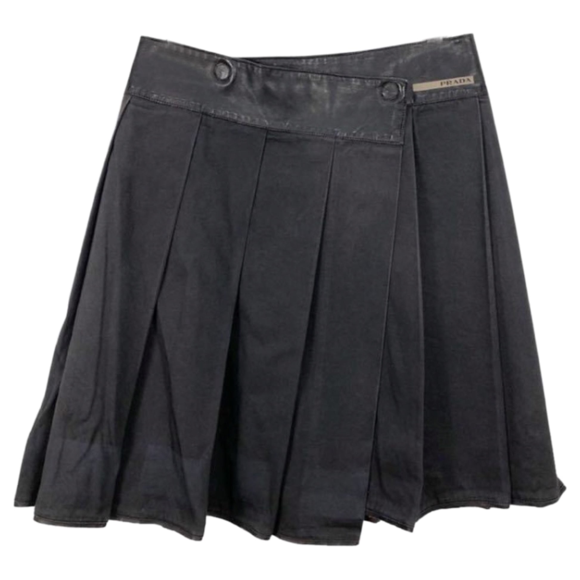 Prada Leather Waist Cotton Pleated Wrap Skirt
