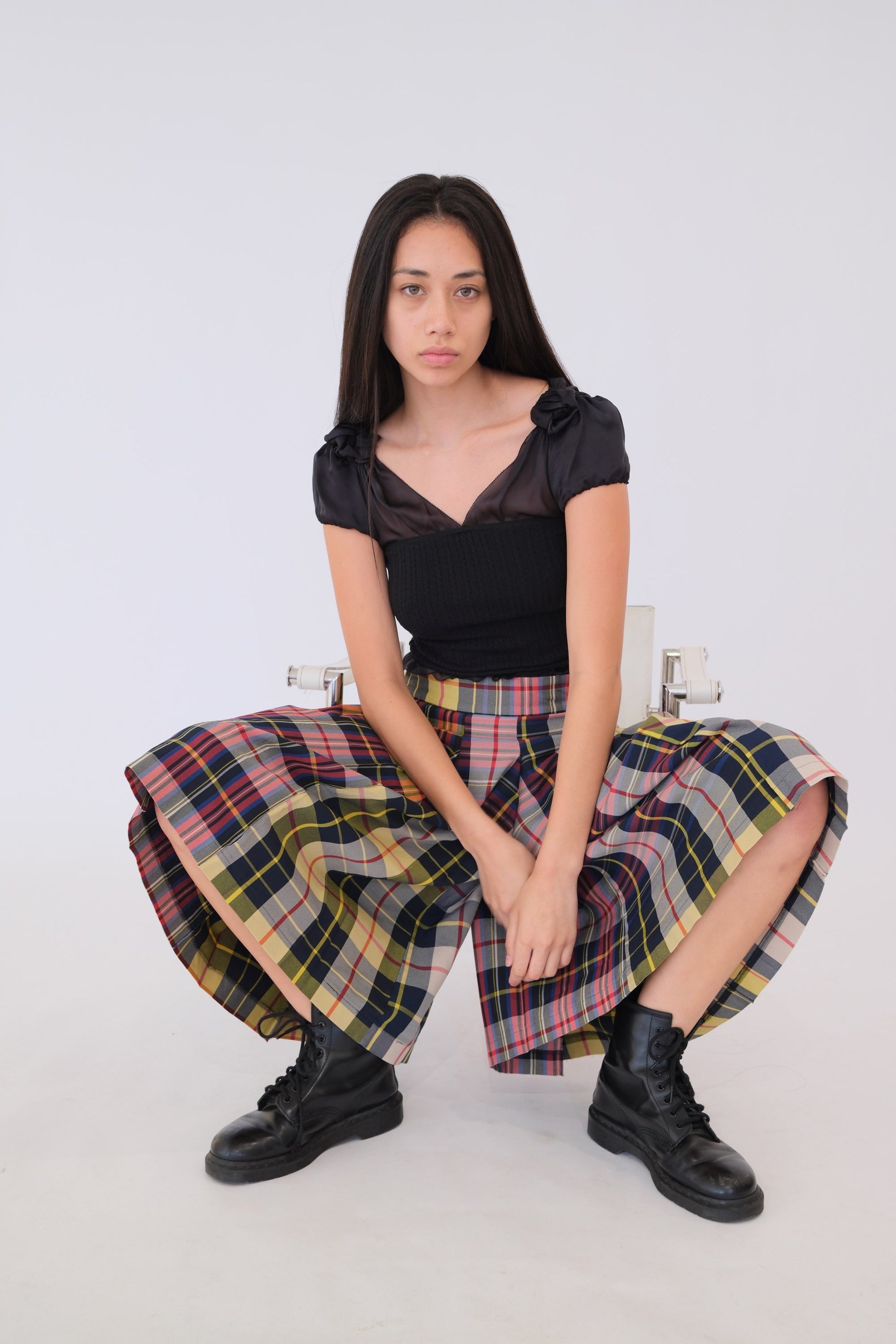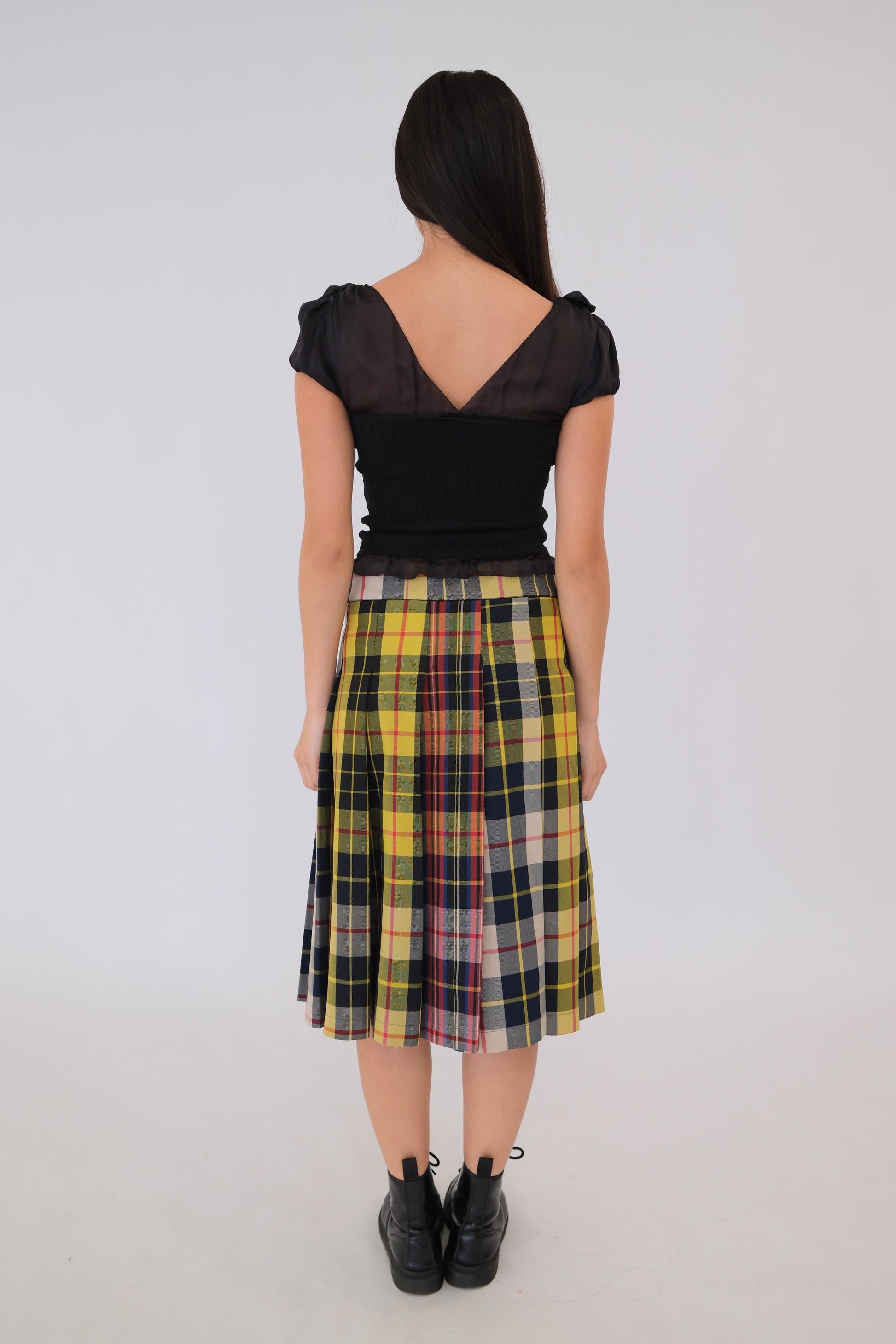 Comme Des Garcons Flare Checkered Pleat Midi Skirt
