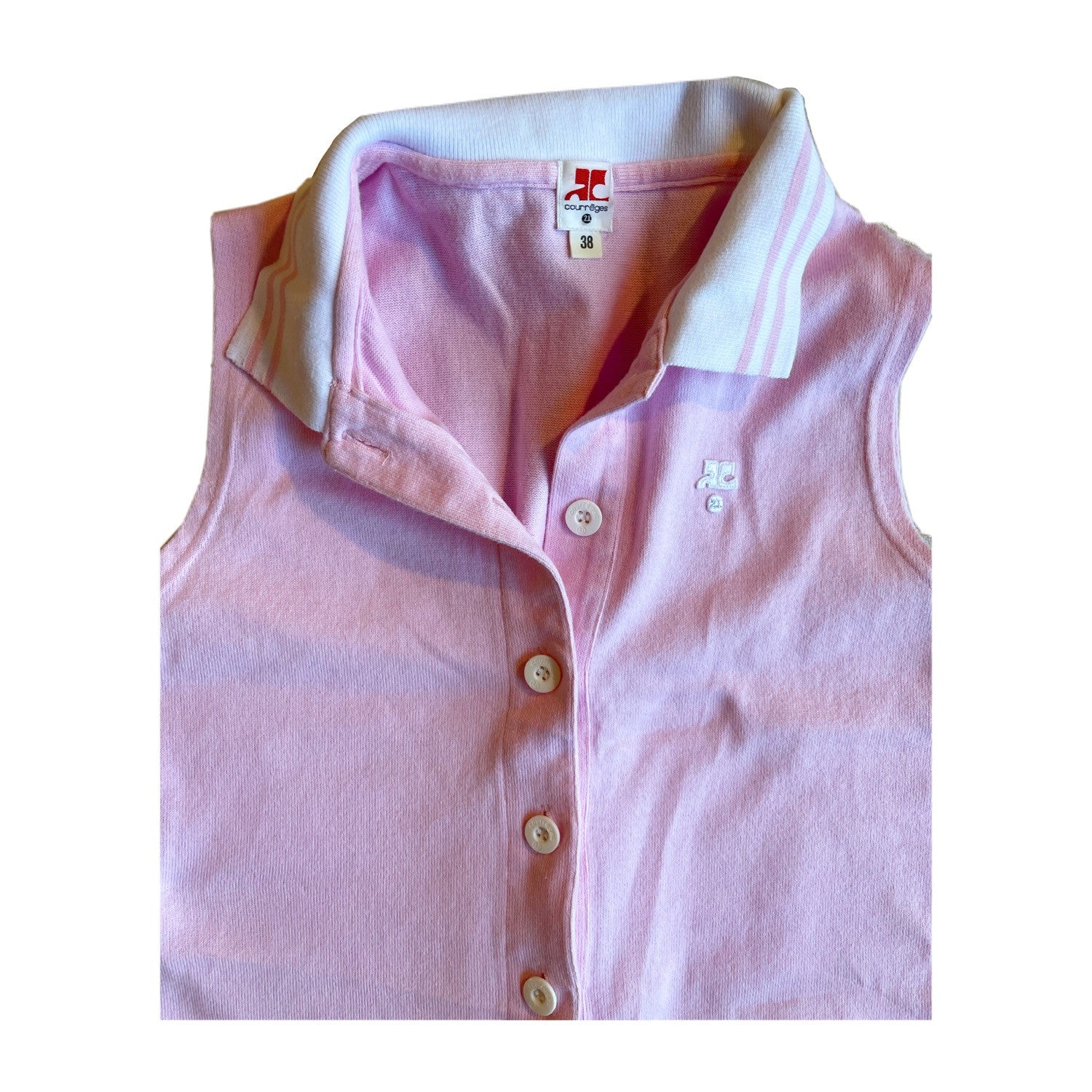 Courreges 38 Knit Polo Sleeveless Button Down Dress