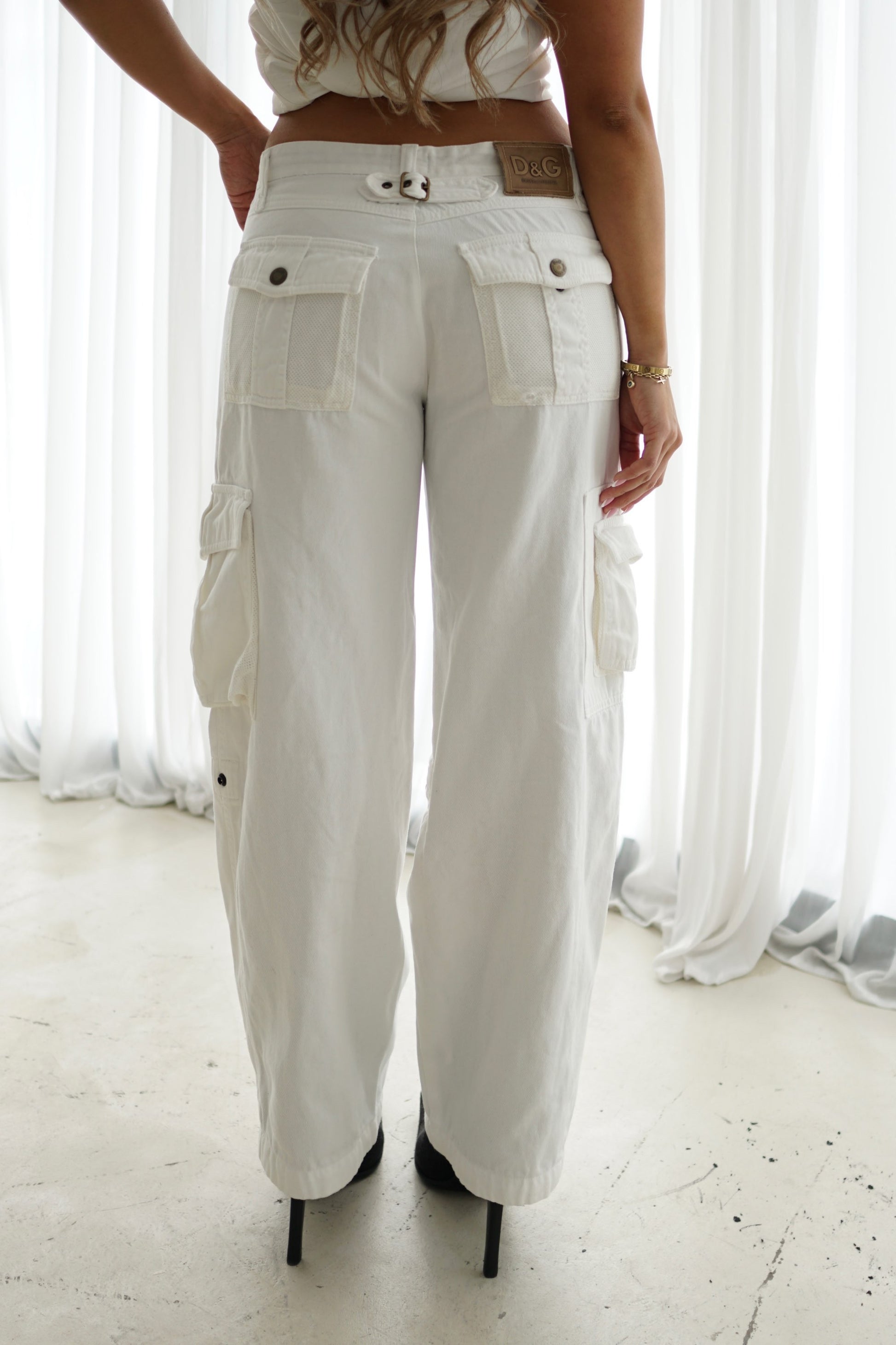 Dolce & Gabbana Cargo Utility Denim Wide Leg Pants