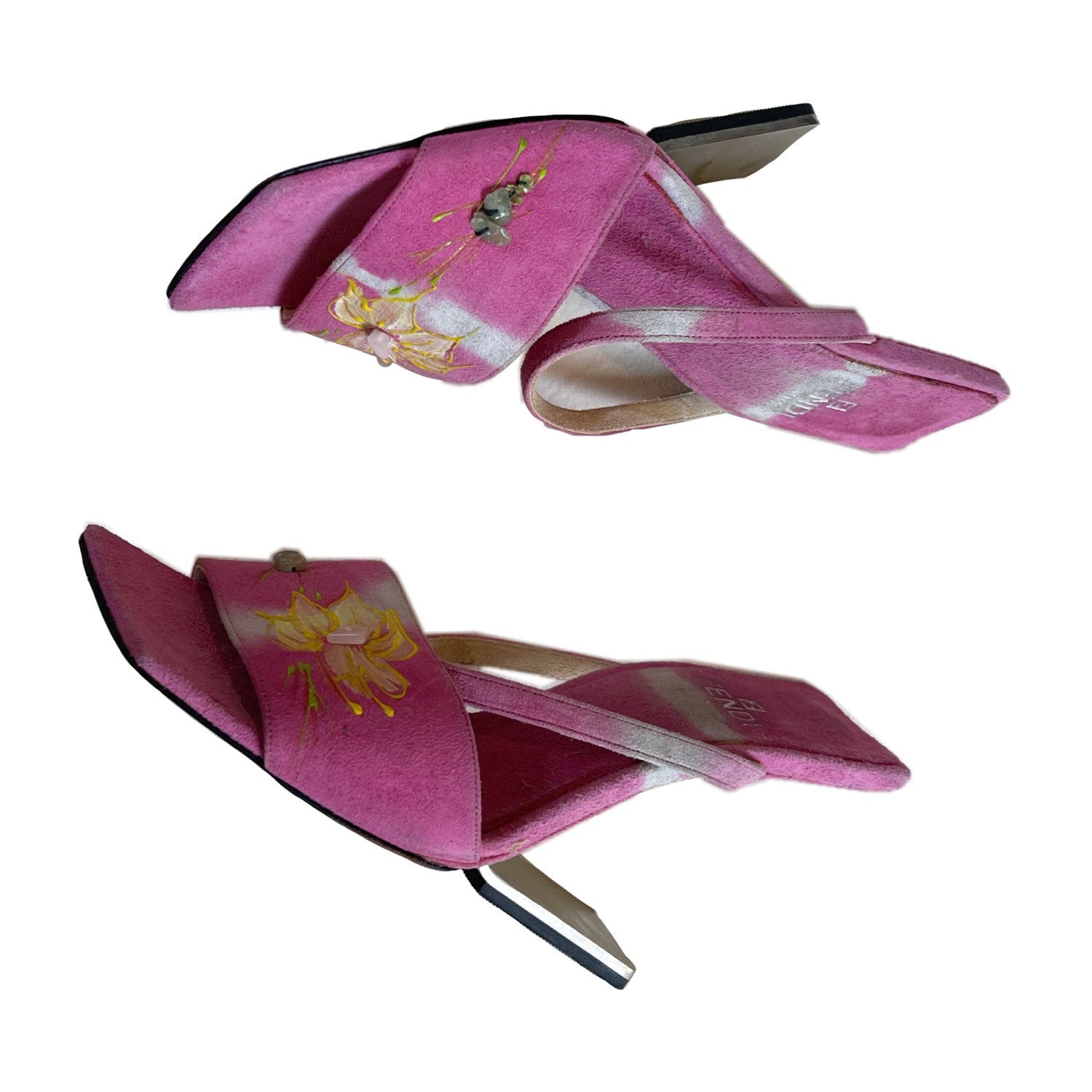 Fendi Pink Floral Beaded Suede Irregular Heel