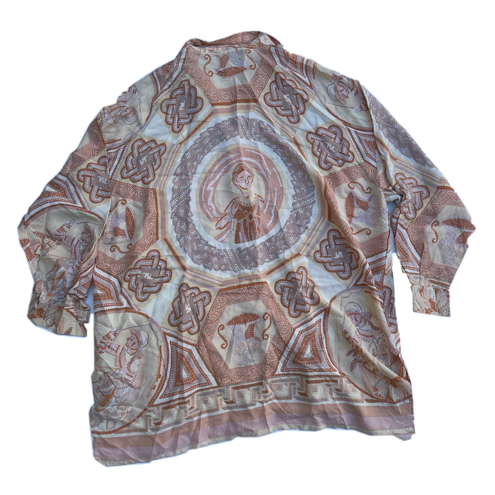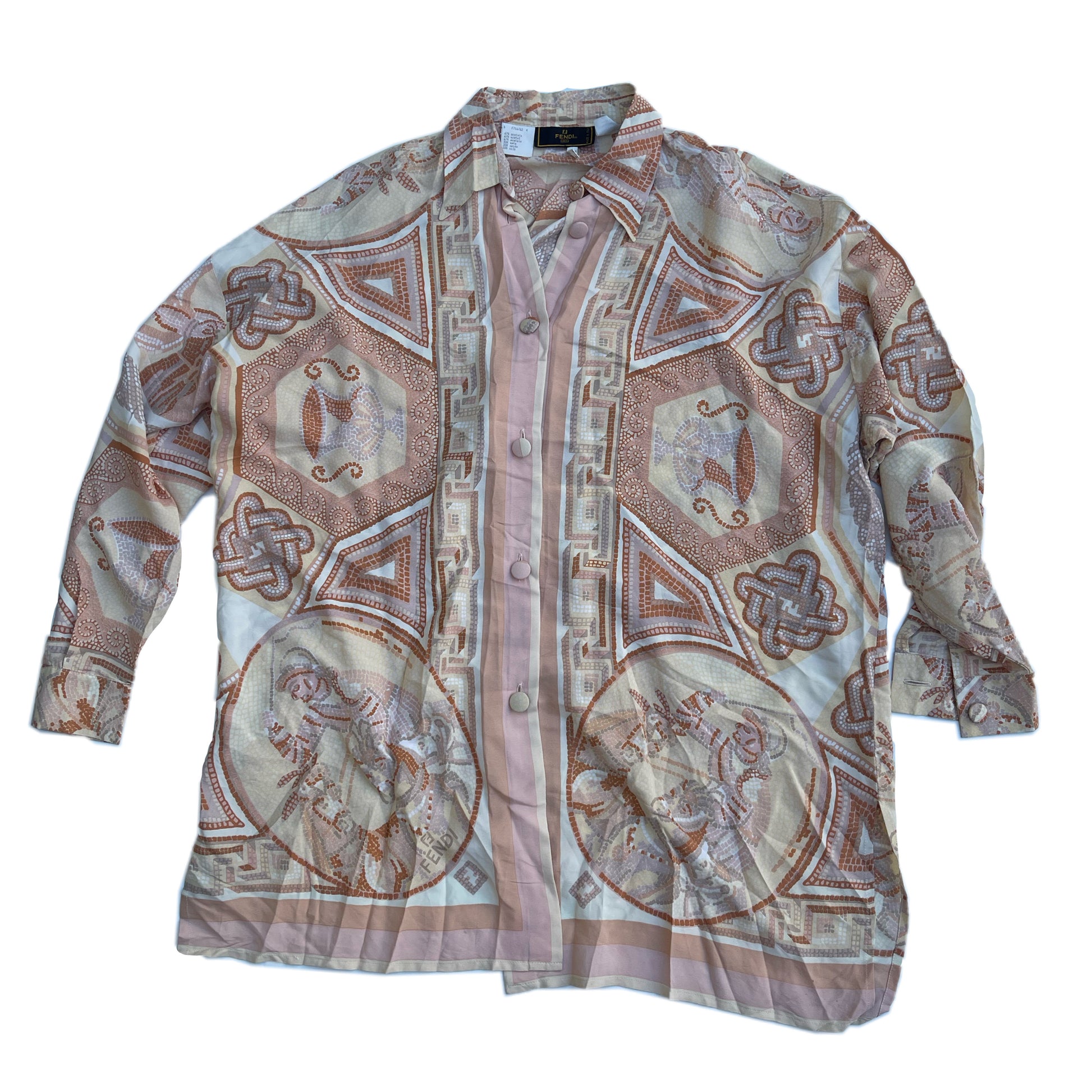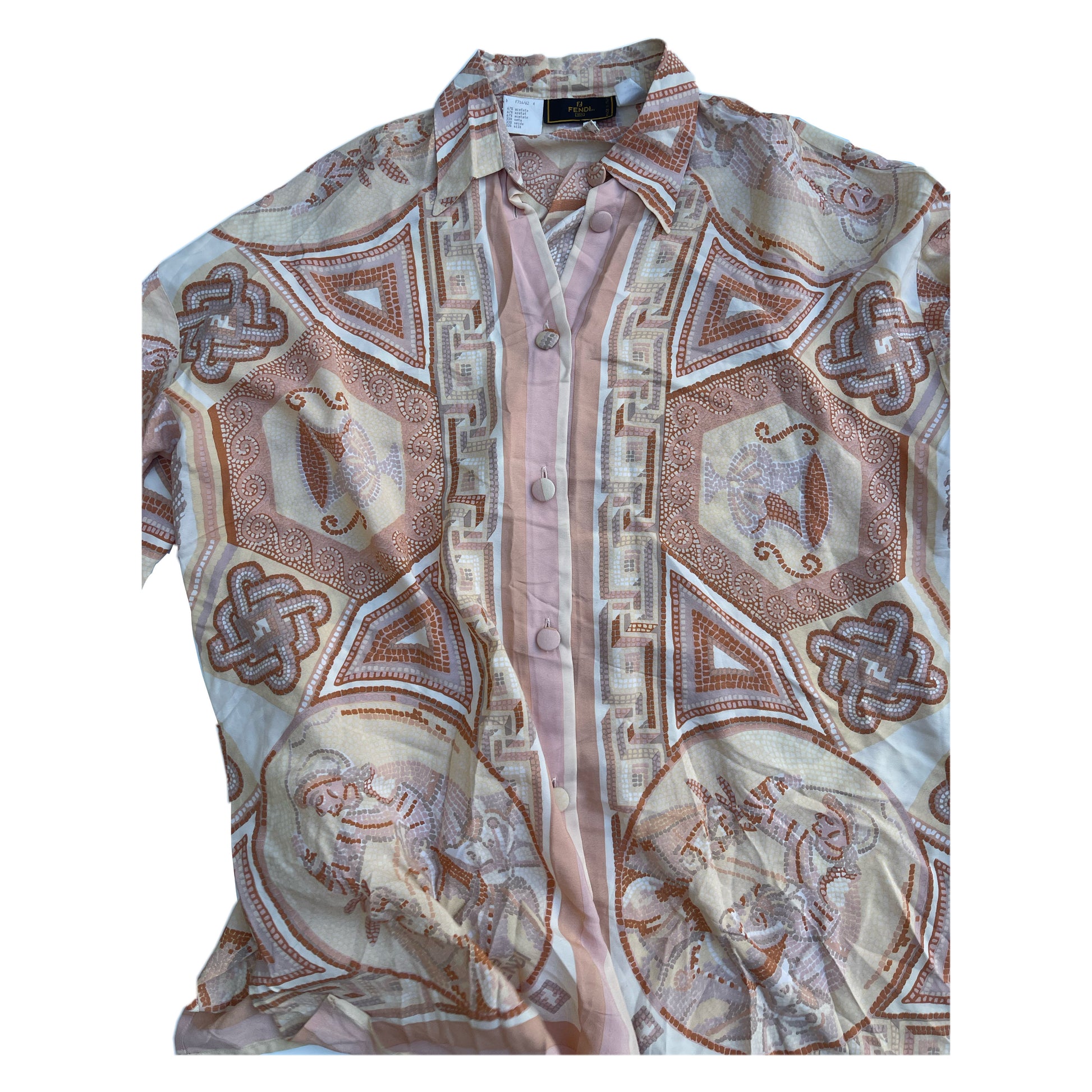Fendi Roma Logo Tile Print Silk Oversized Shirt