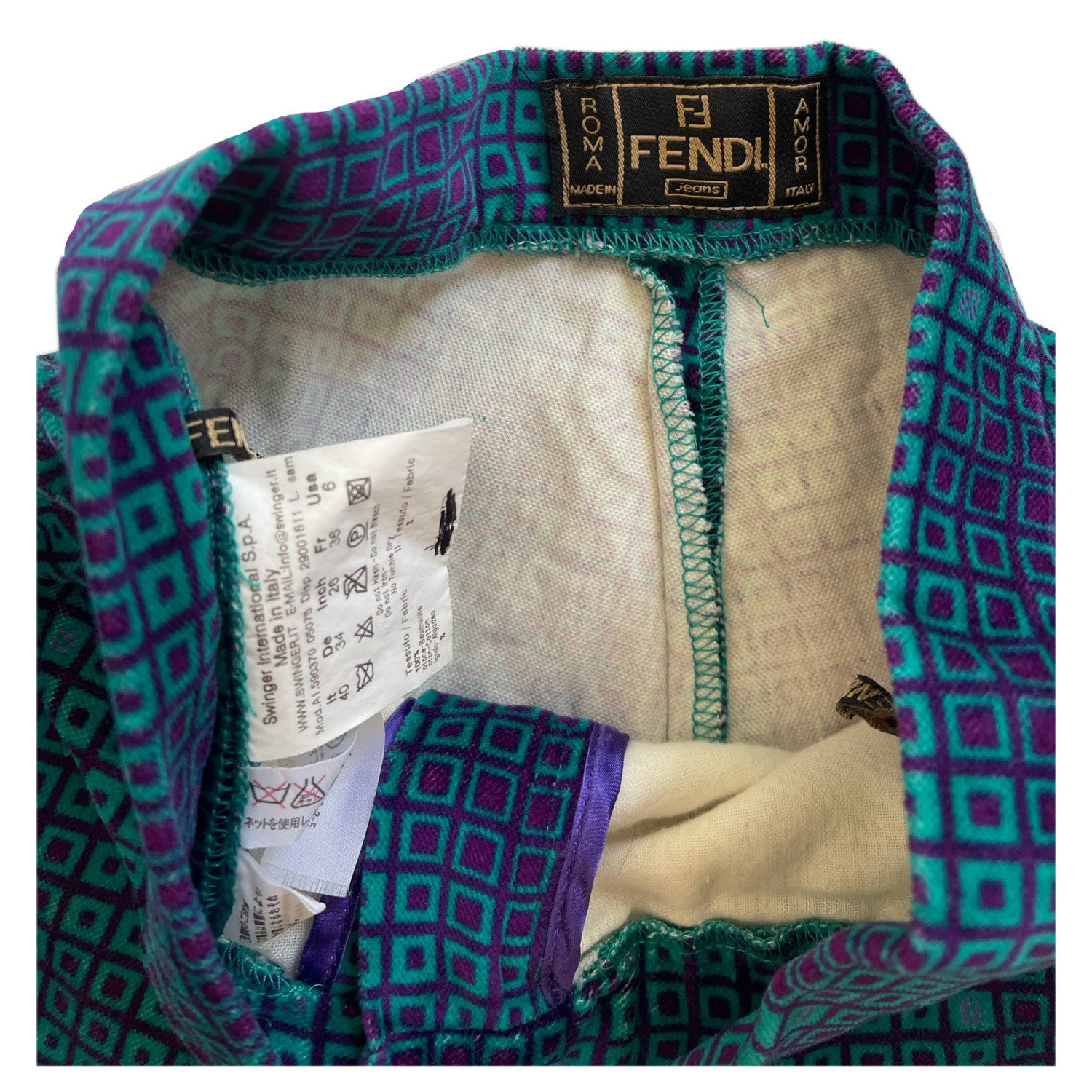 Fendi Velvet Checkered Logo Wide Leg Pants