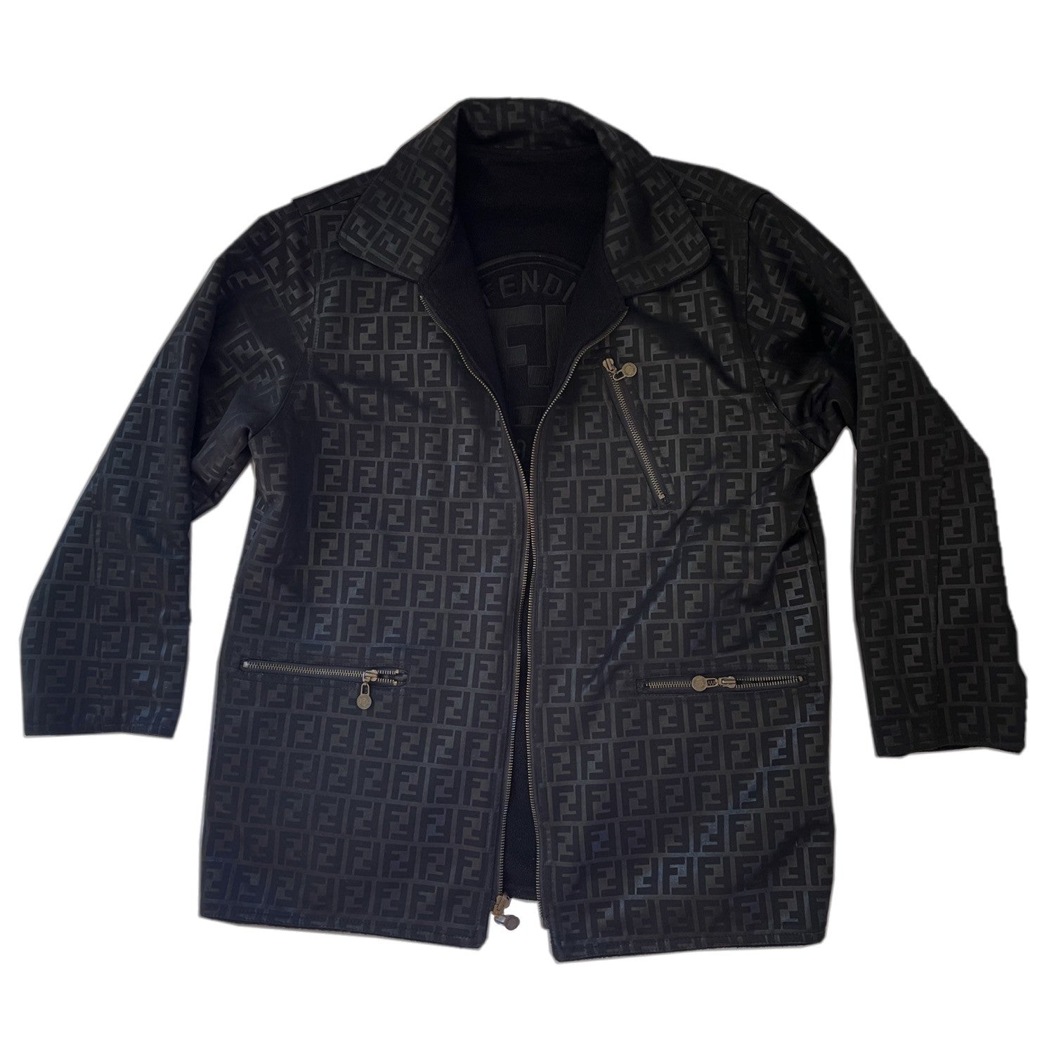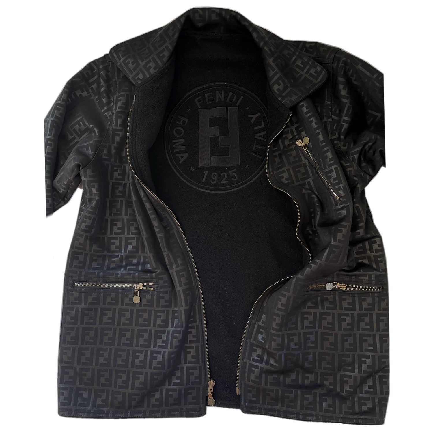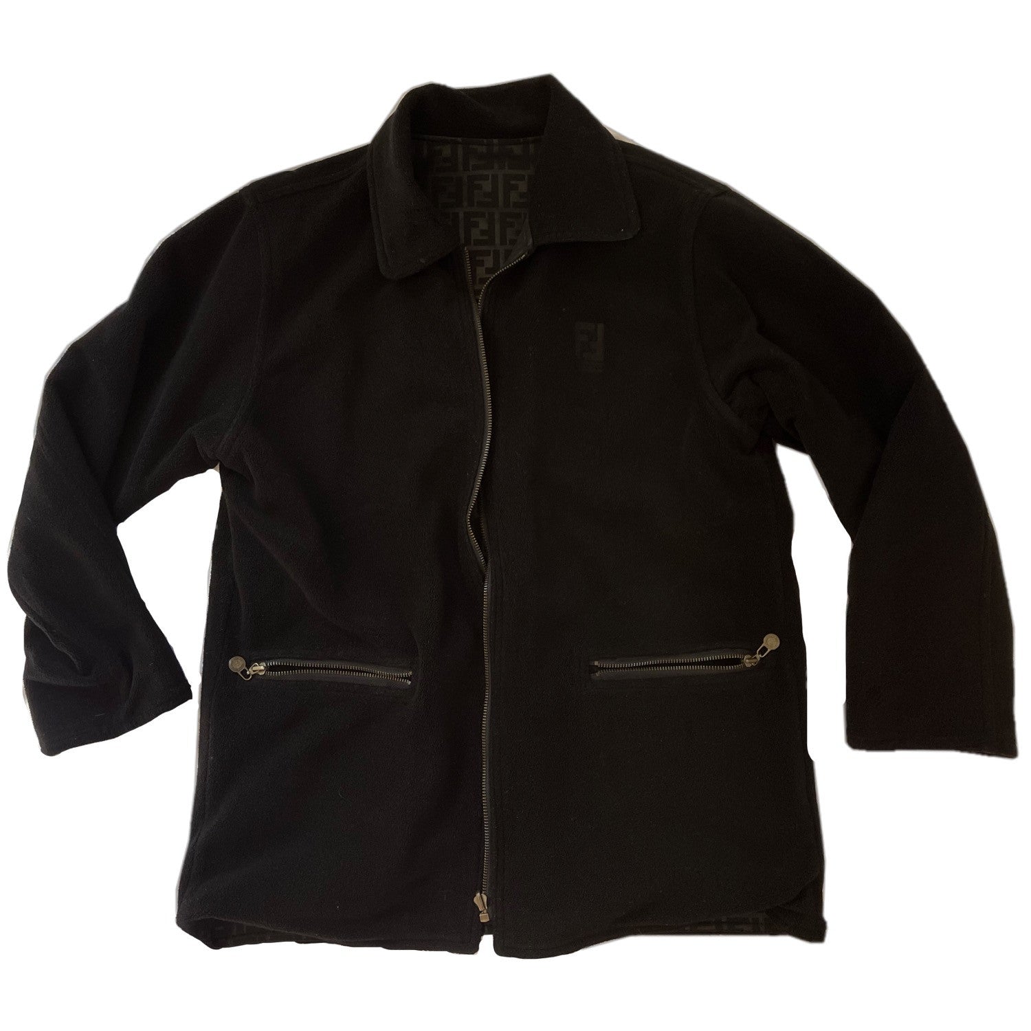 Fendi Zucca Print Logo Reversible Fleece Zipper Coat