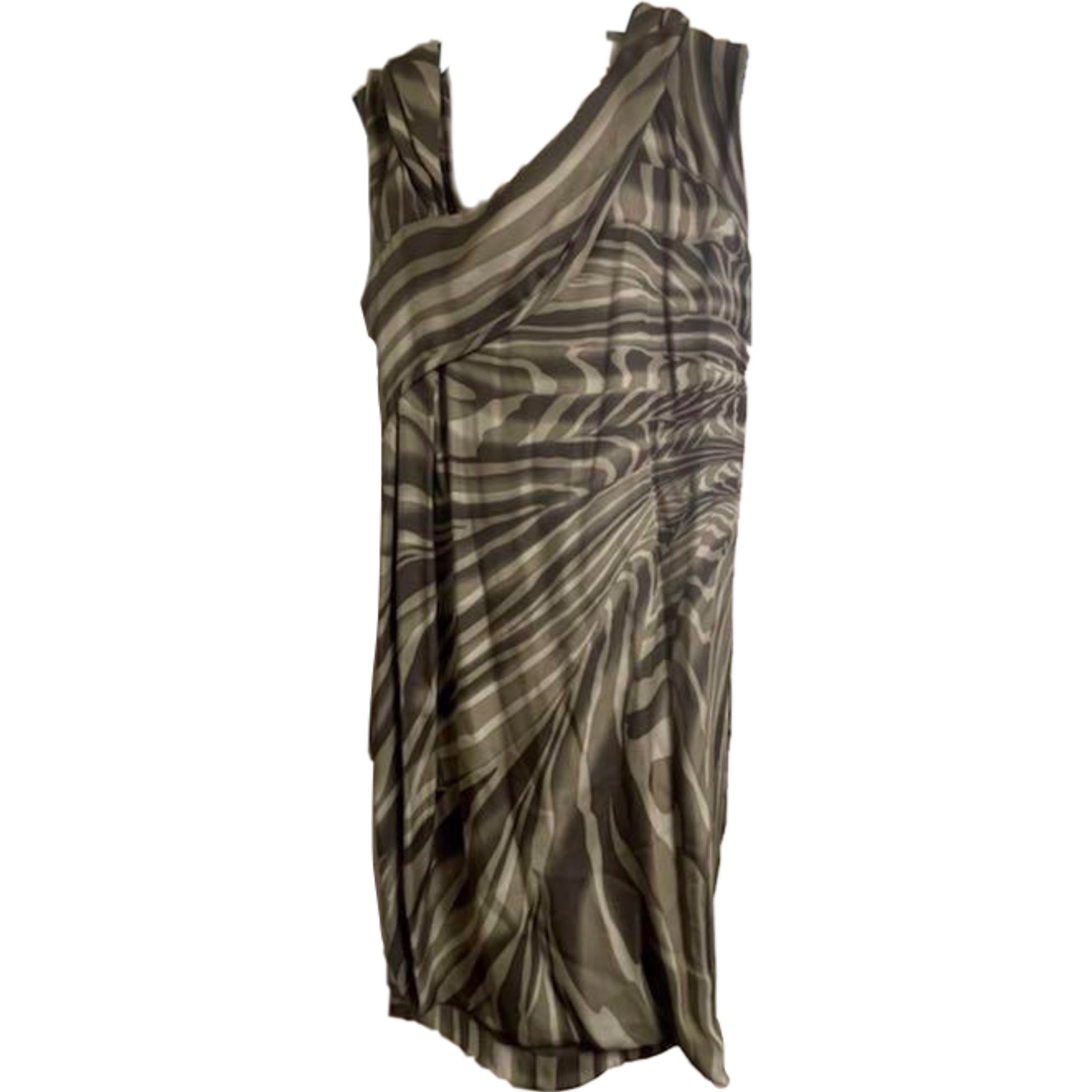 Gucci Abstract Neutral Landscape Silk Assymetrical Strap Dress