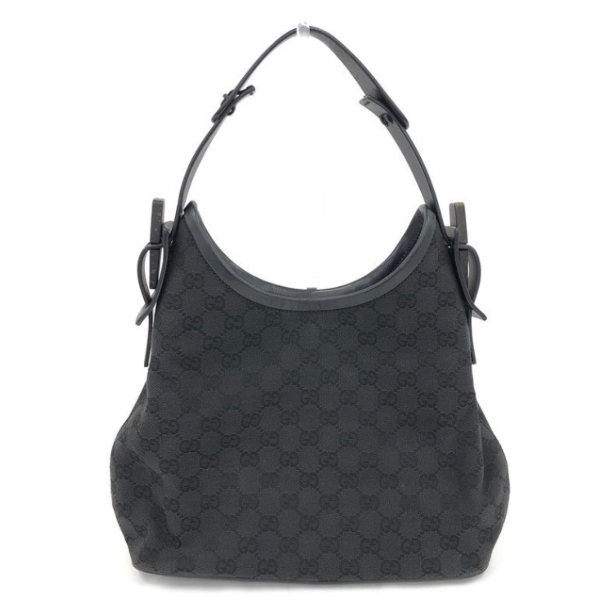 Gucci Canvas Monogram Black Leather Strap Shoulder Handbag
