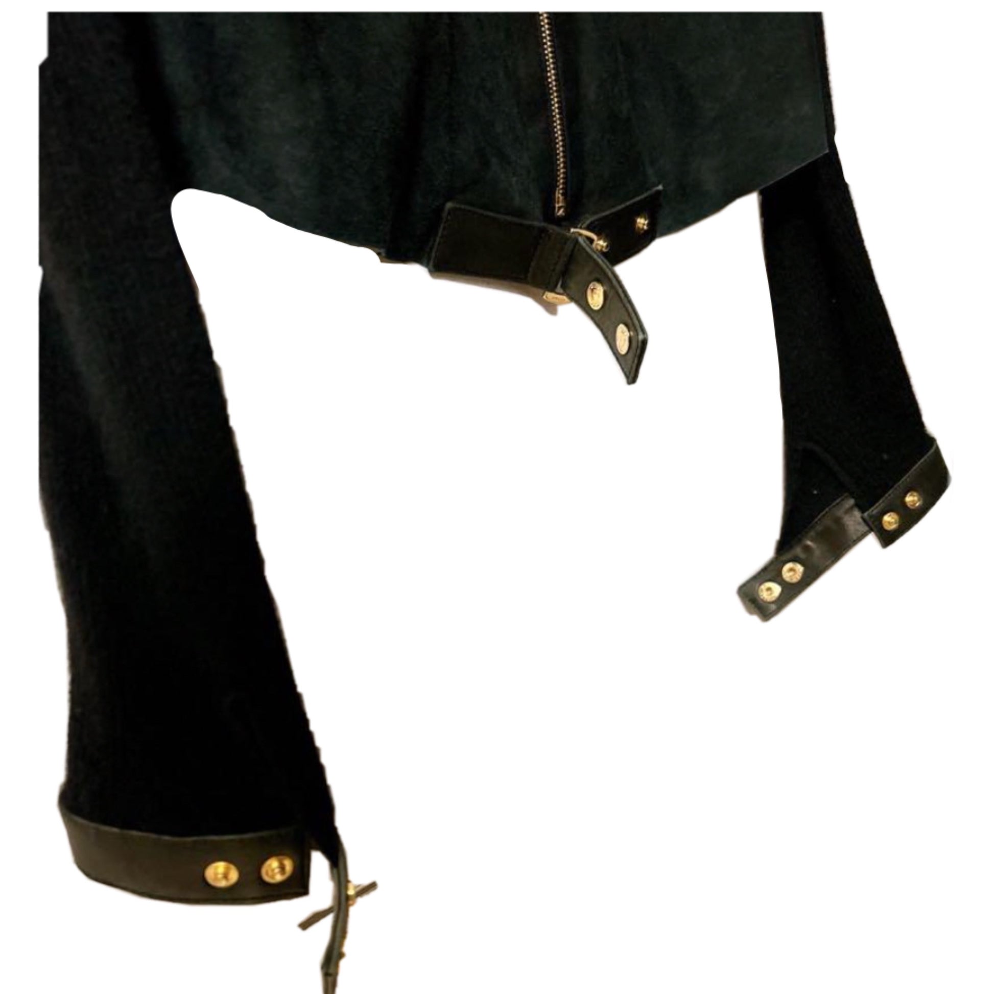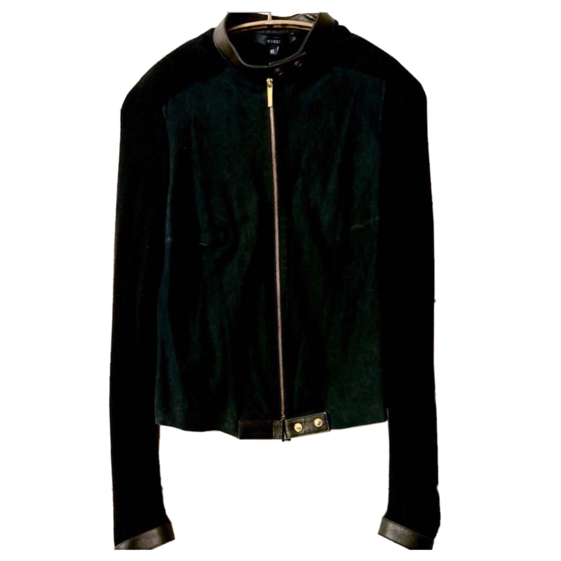 Gucci Cashmere Sleeve Suede Body Leather Zip Motor Cardigan