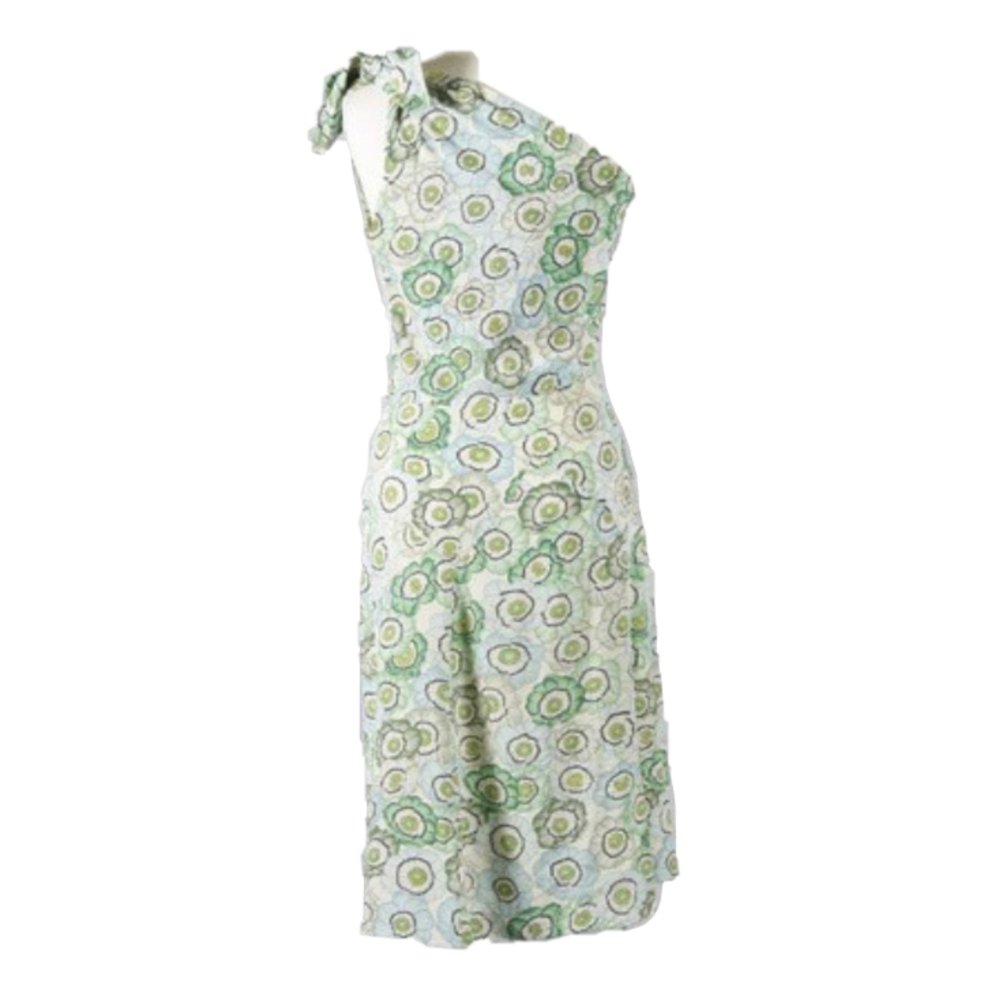Gucci Floral Logo One Shoulder Silk Midi Dress