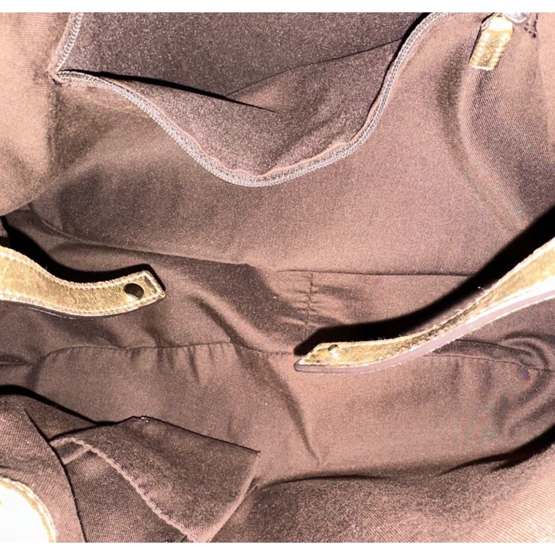 Gucci Monogram Bronze Leather Trim Double Strap Handbag