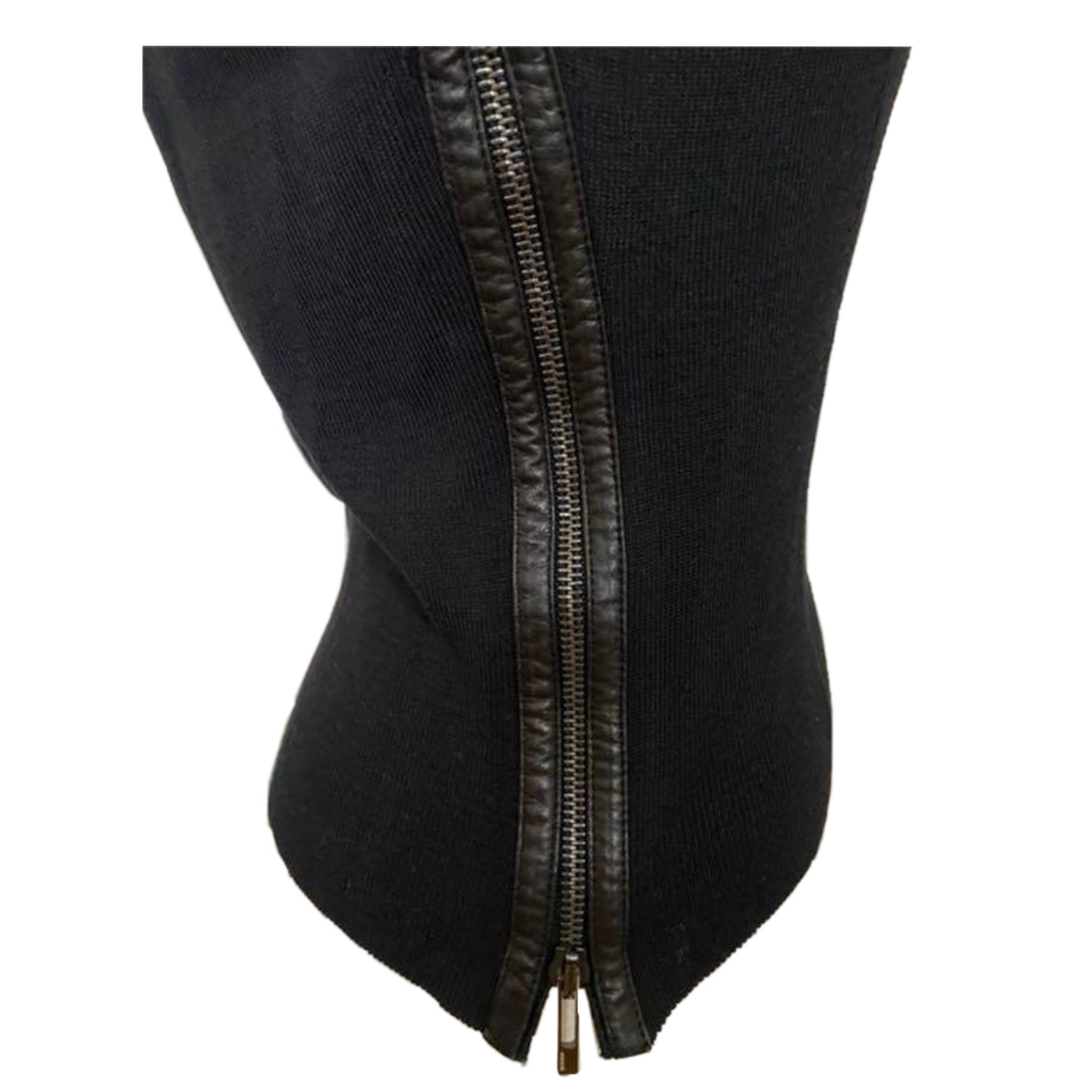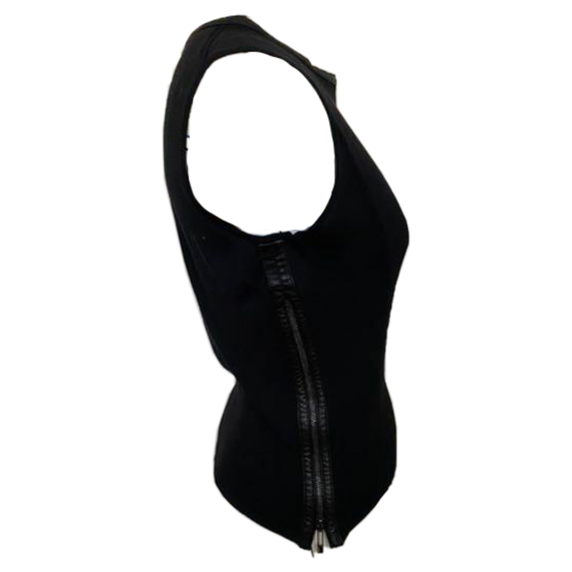 Gucci Ribbed Leather Trim Side Zipper Tank Top