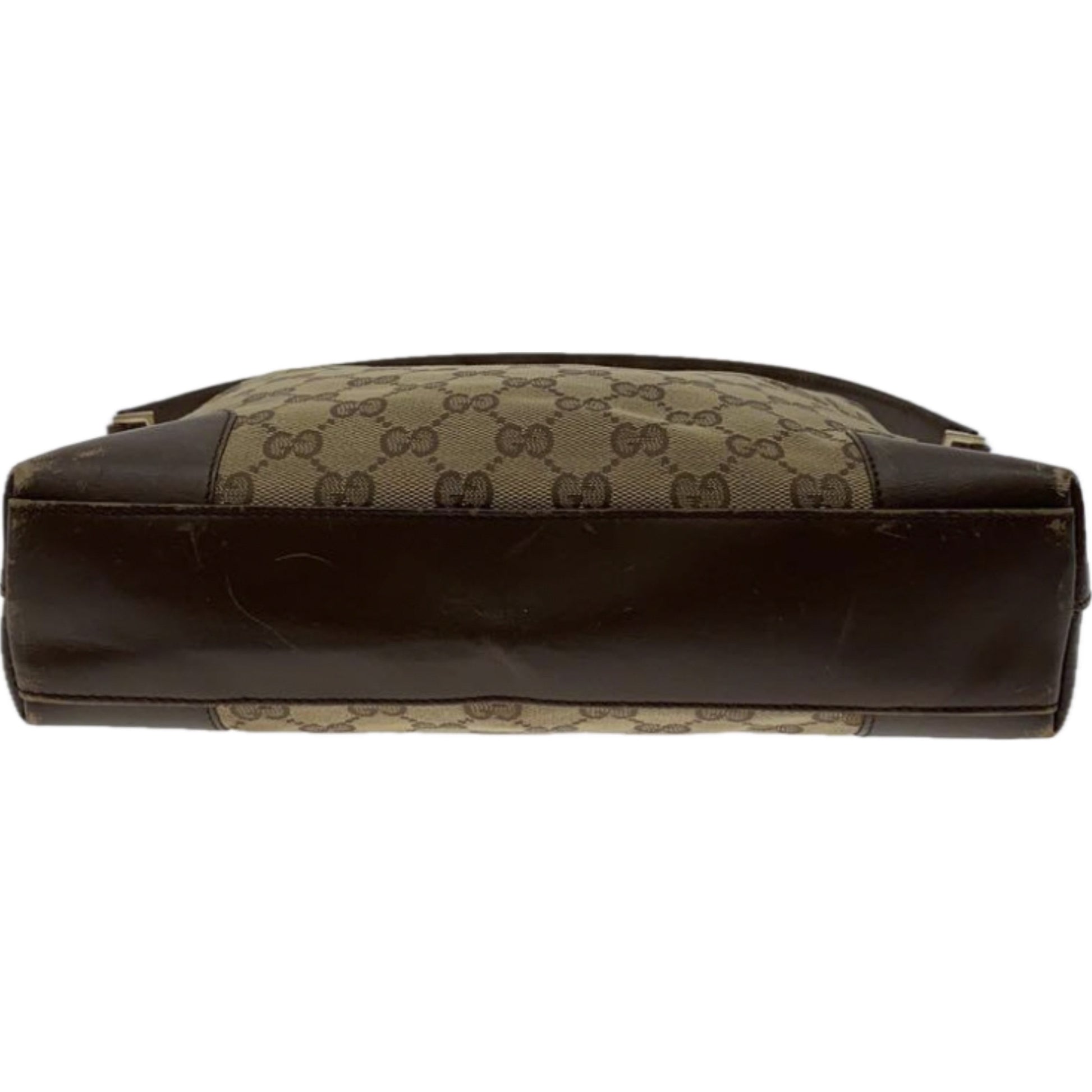 Gucci Monogram Canvas Leather Trim Strap Handbag