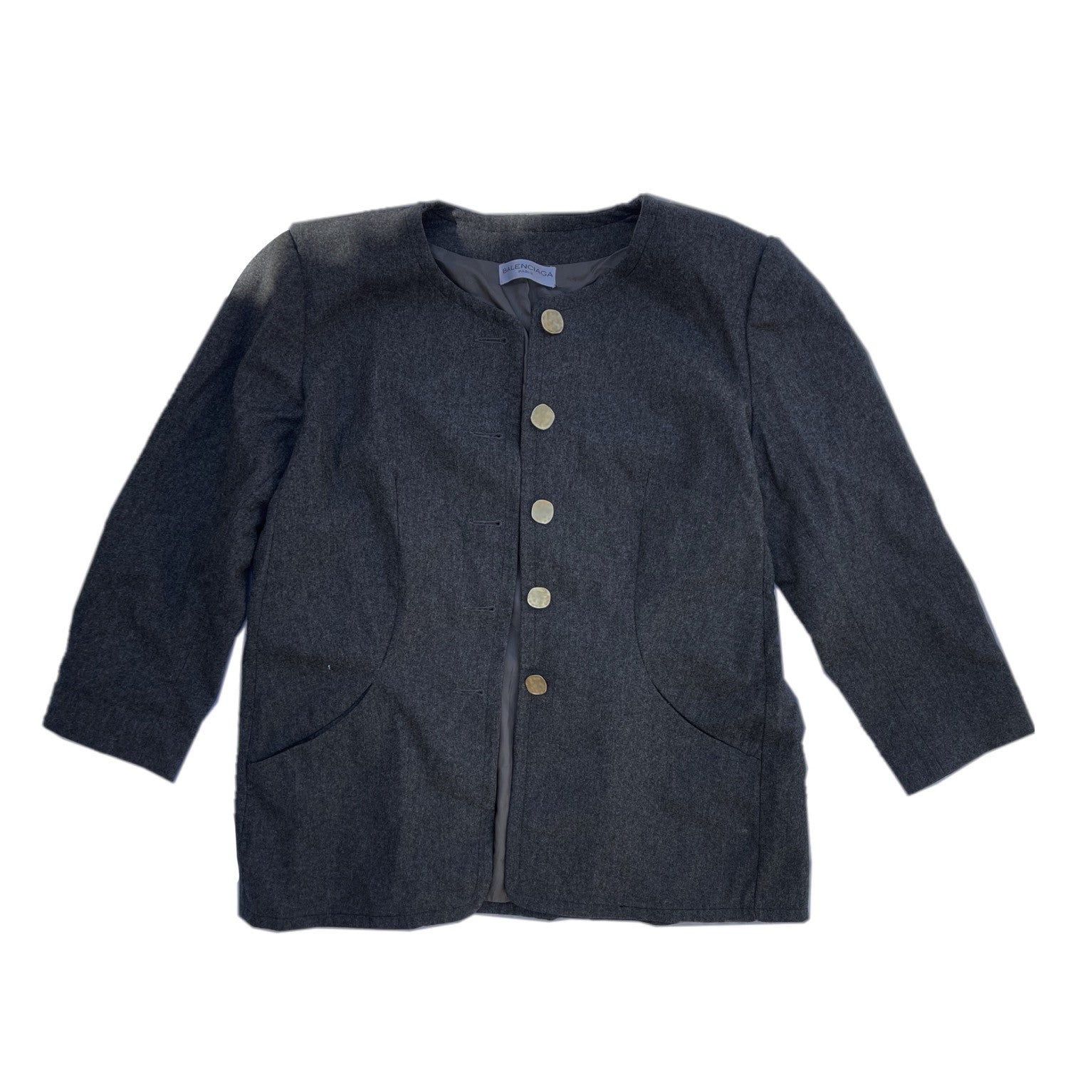 Balenciaga Charcoal Wool Gold Button Down Coat