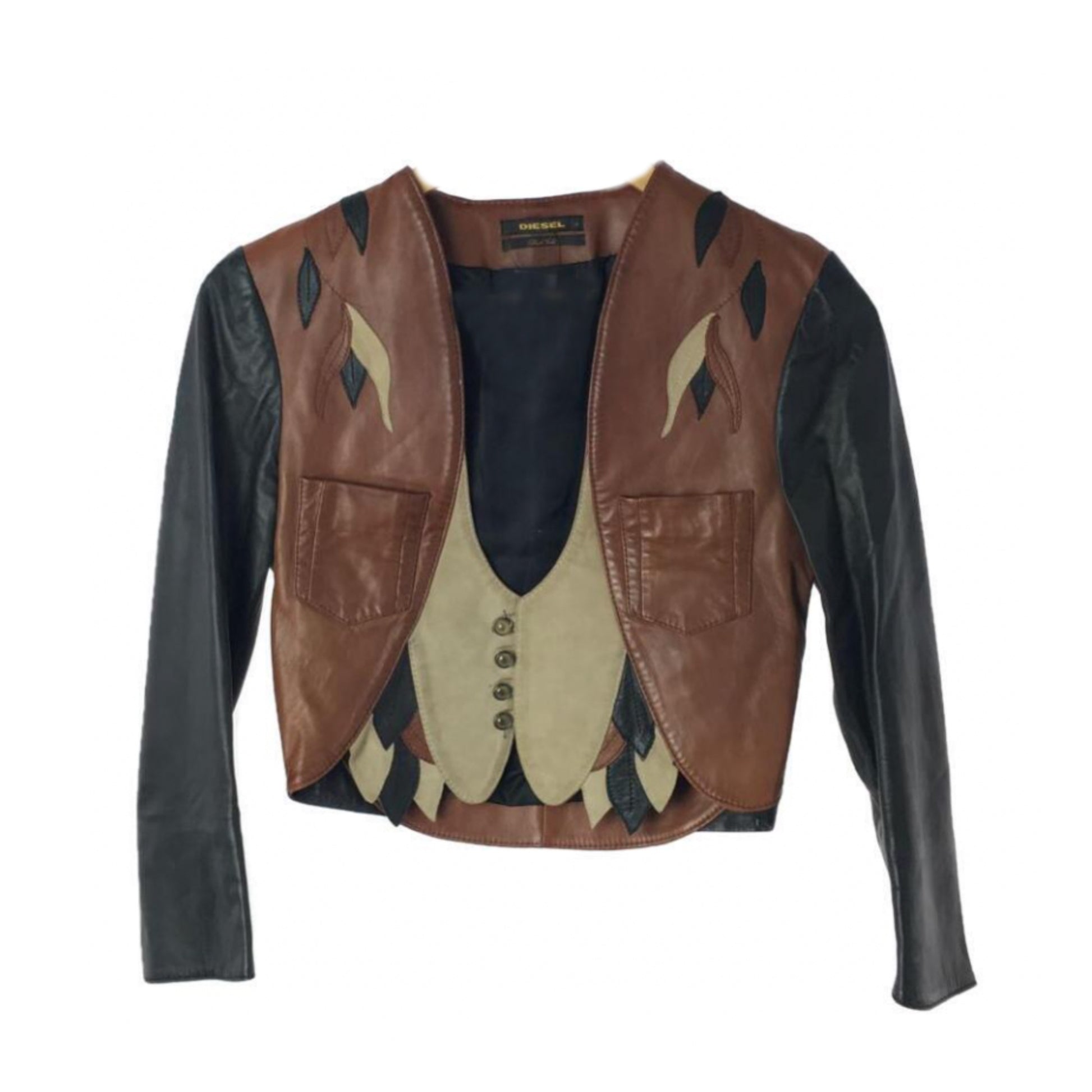 Diesel Gold Sheep Leather Cropped Deep V Neck Jacket/Top