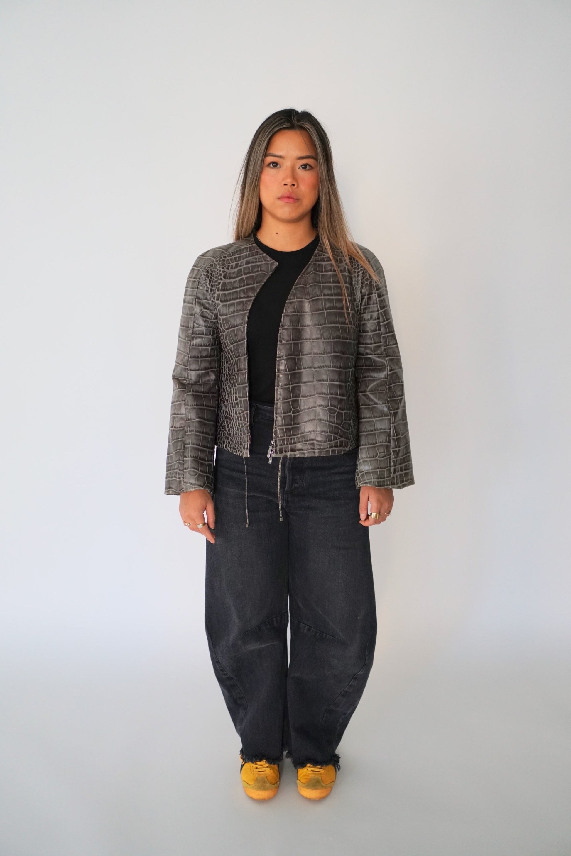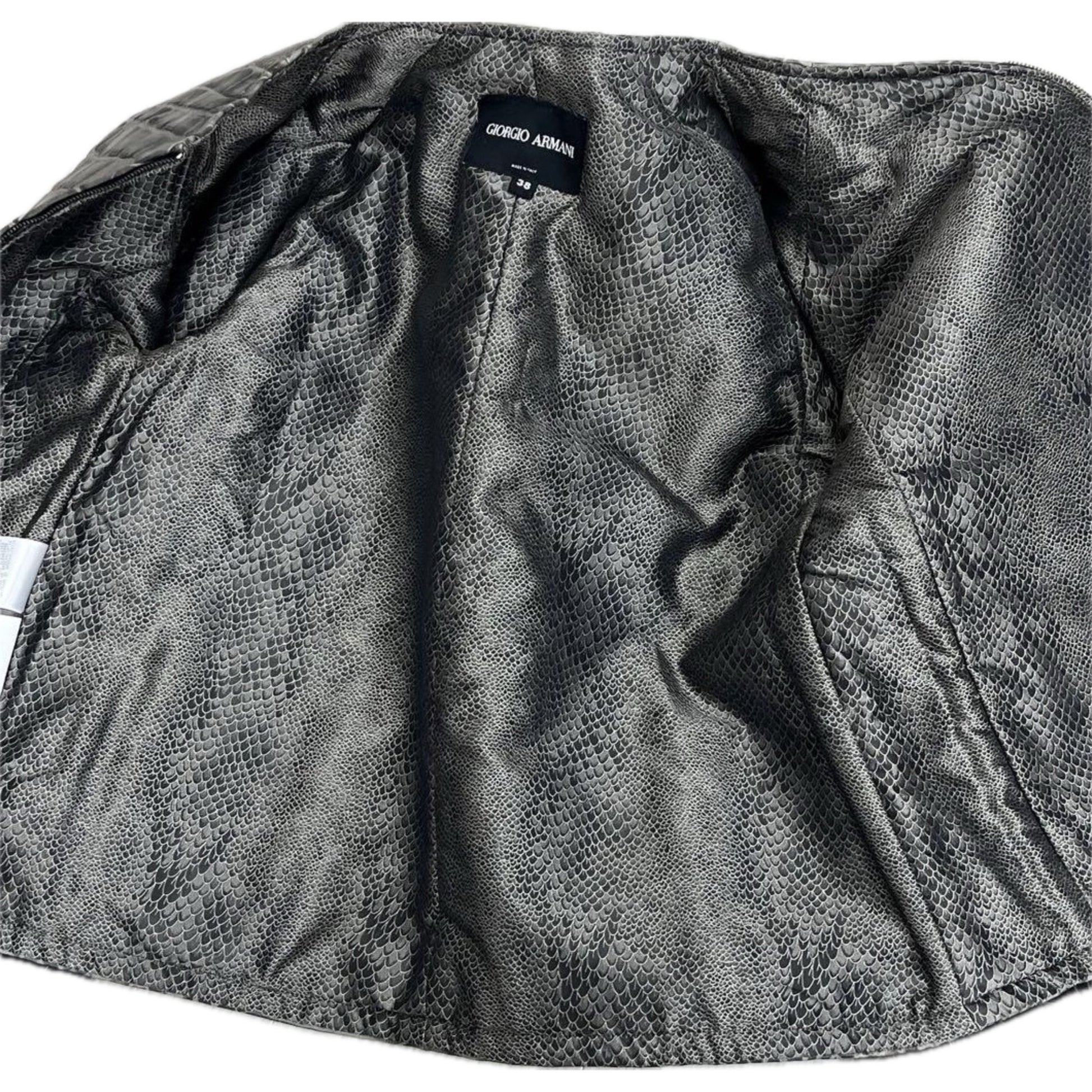 Giorgio Armani Calf Leather Reptile Assymetrical Zip Flare Sleeve Jacket