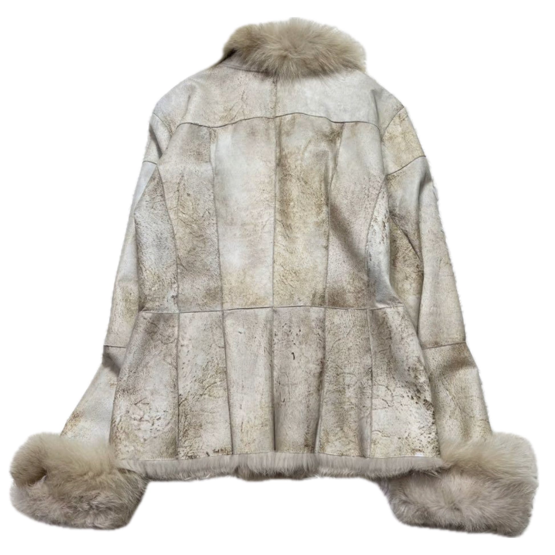 Marella Sport Rabbit Fur Trim Leather Jacket