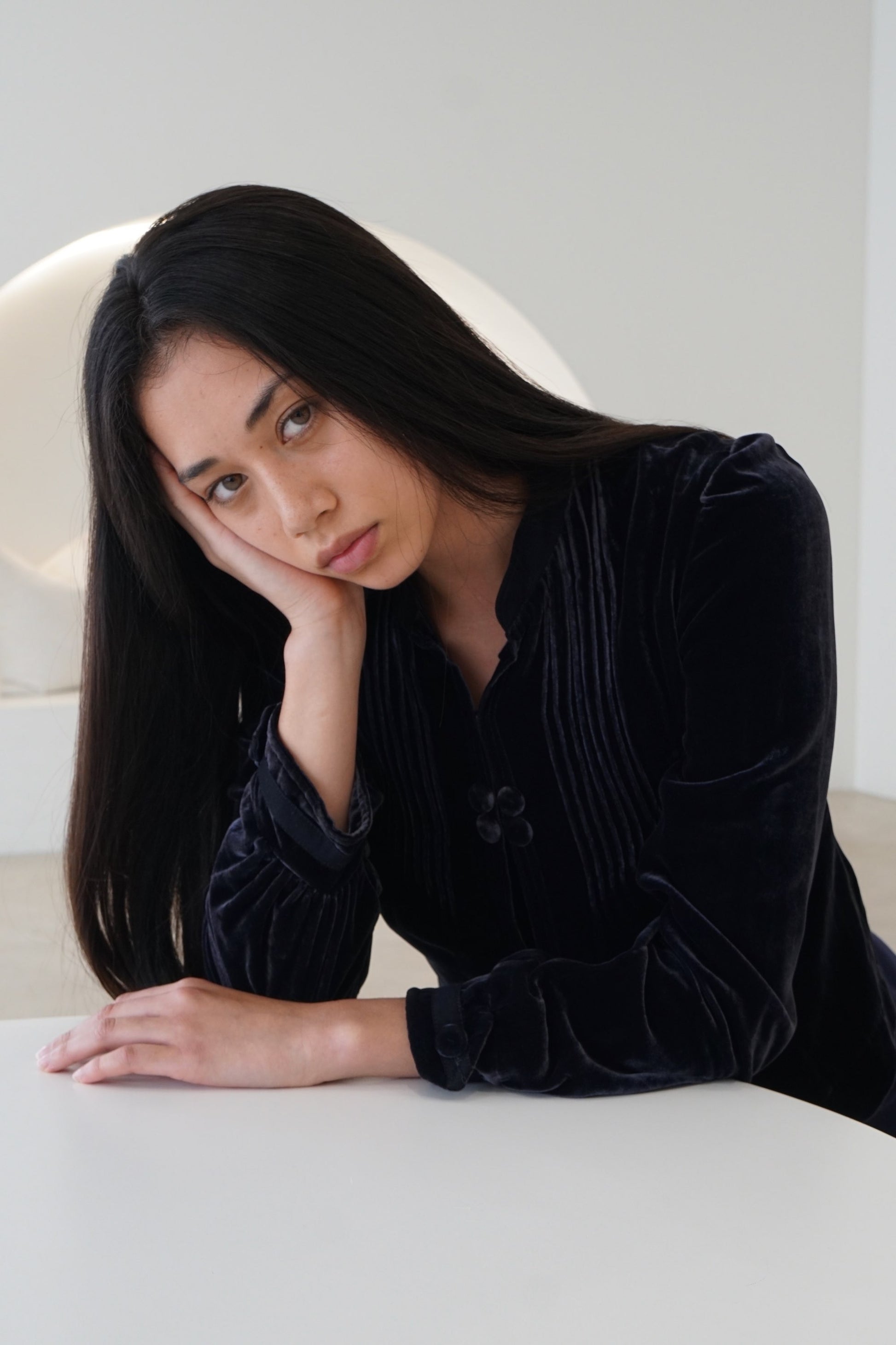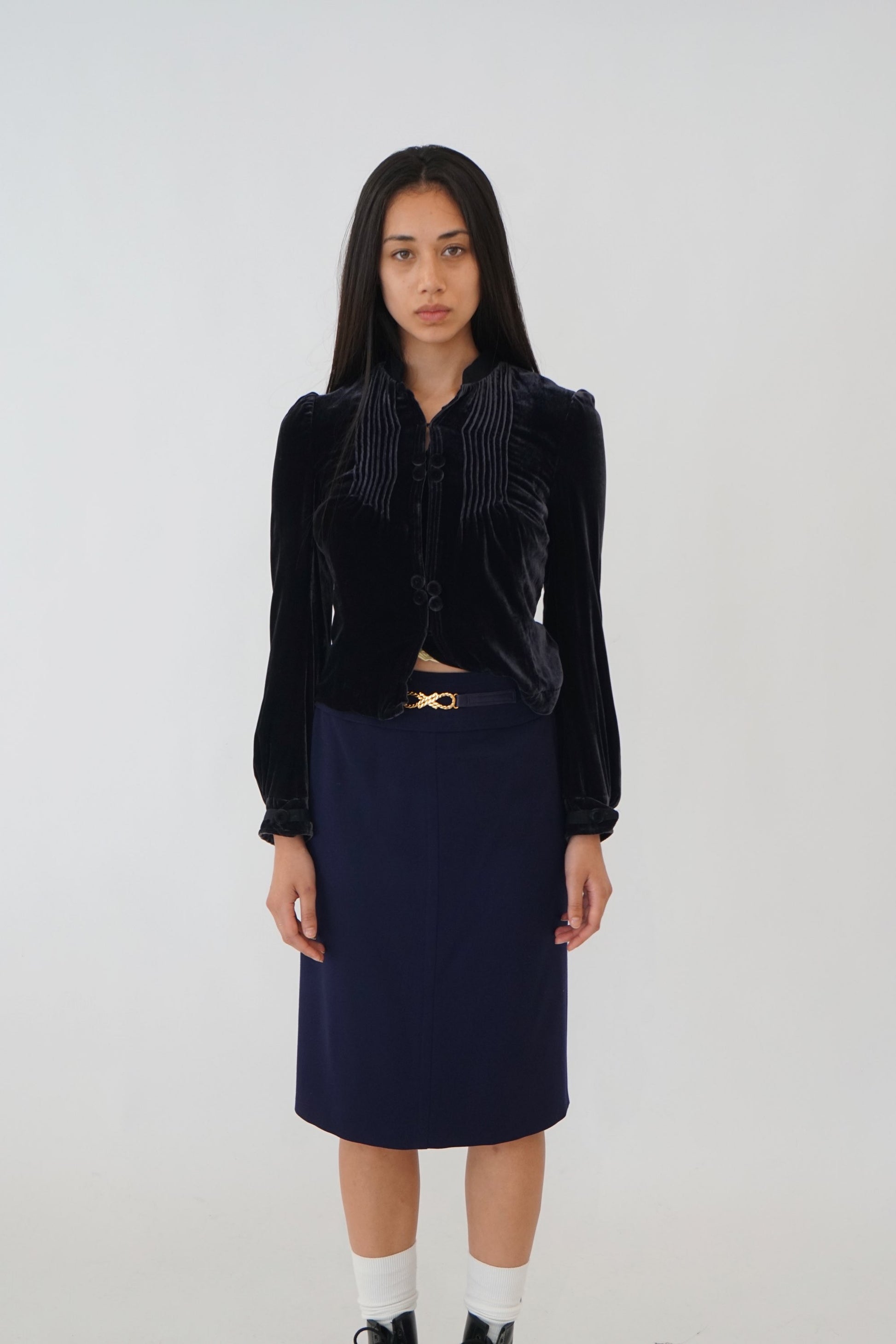 Max & Co Velvet Pleated Navy Frog Closure Jacket