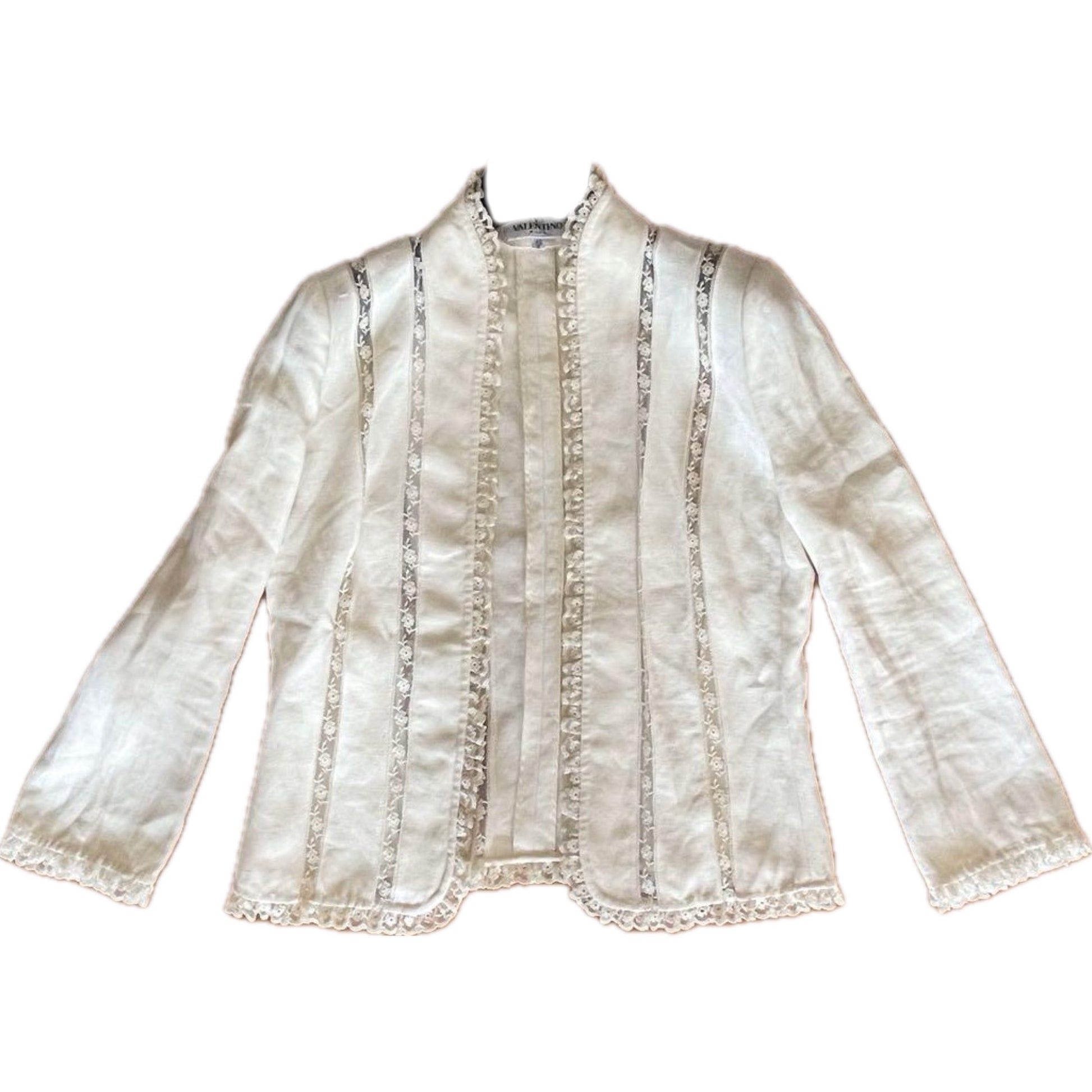 Miss V Valentino Linen Lace Ladder Detail Hem Jacket