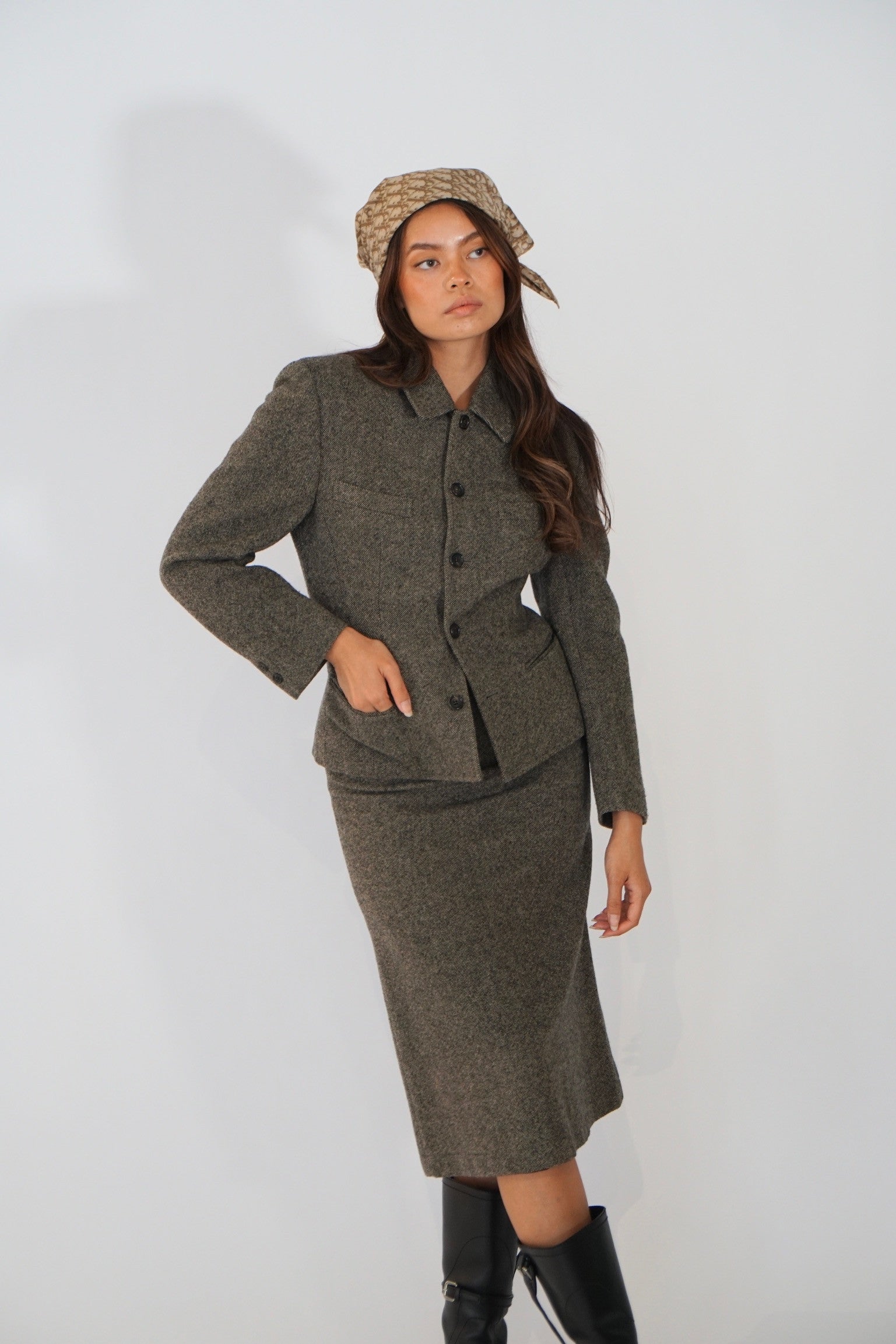 Tricot Comme des garçons tweed wool high waisted tailored fitted skirt and blaze