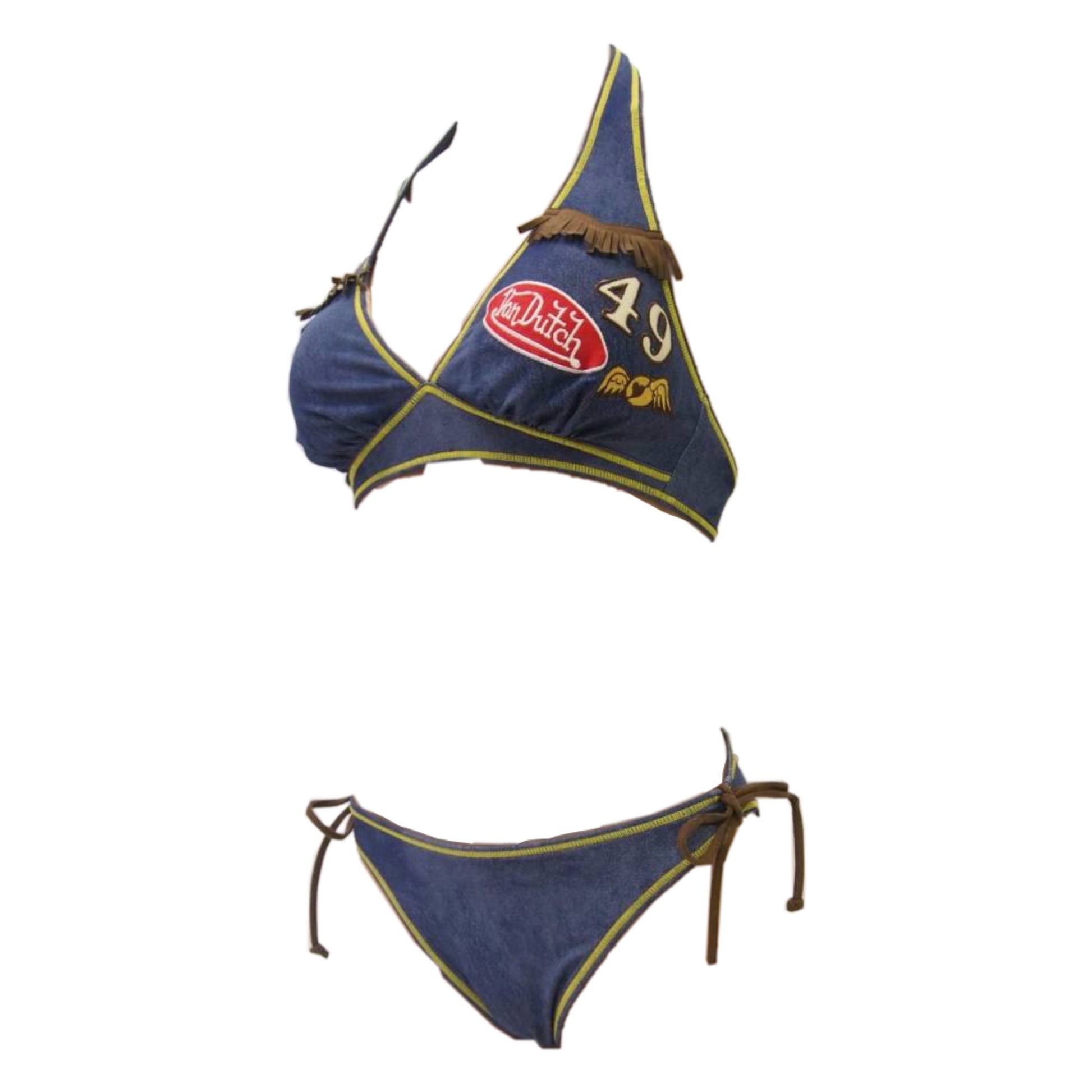 Von Dutch Denim Look Fringe Patch Bikini Set