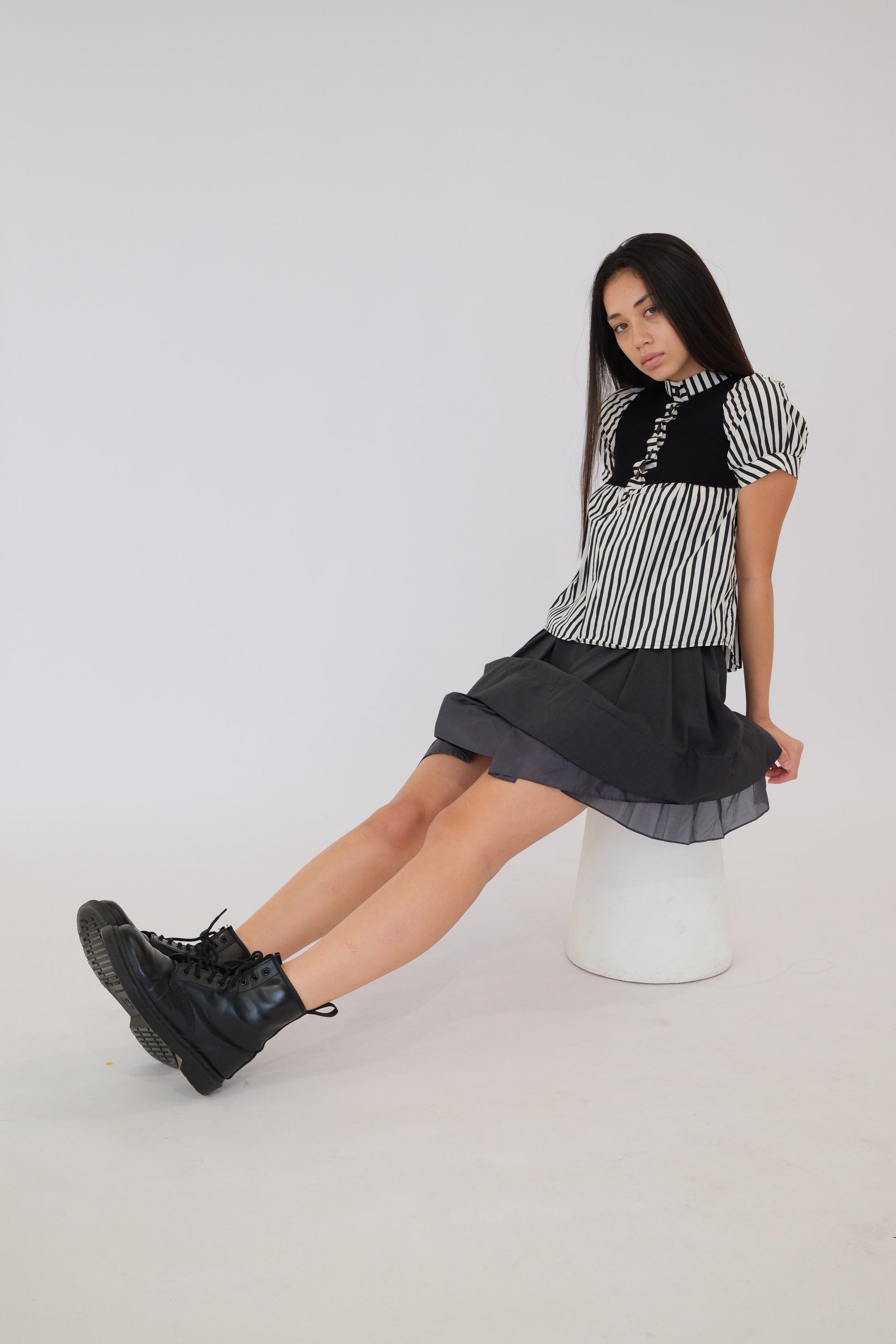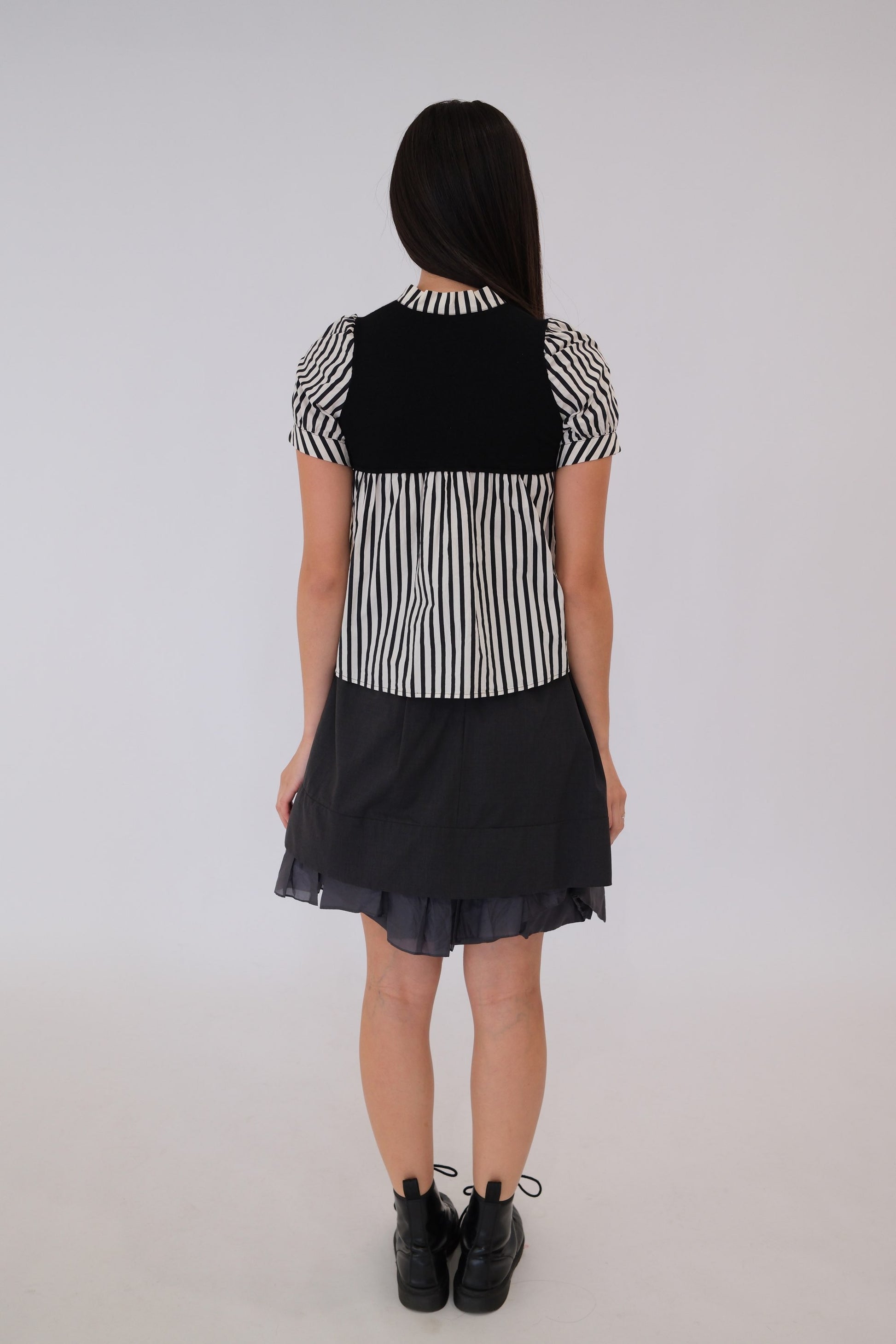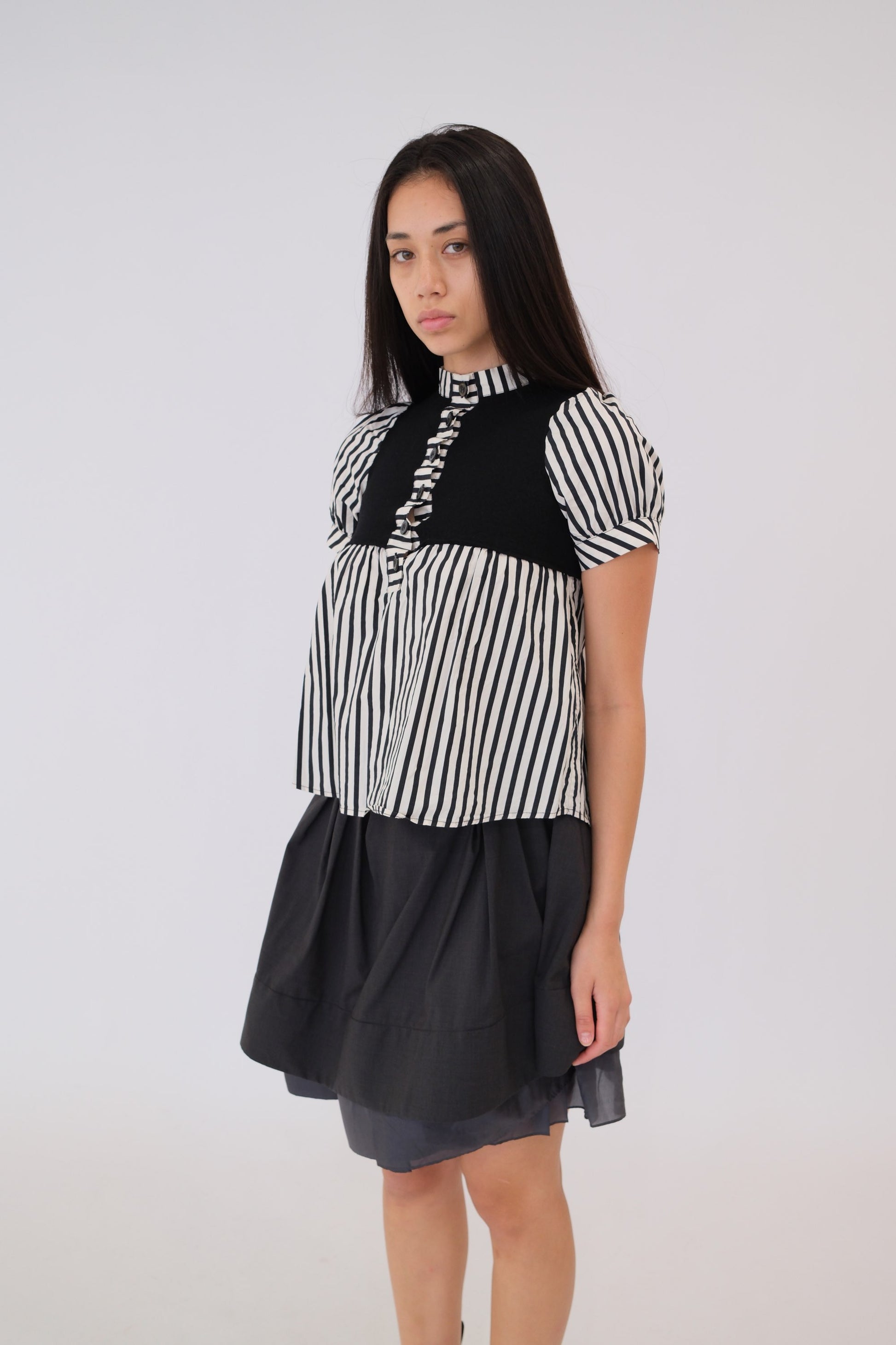 Diane Von Furstenburg Wool Puff SS stripe peplum Blouse