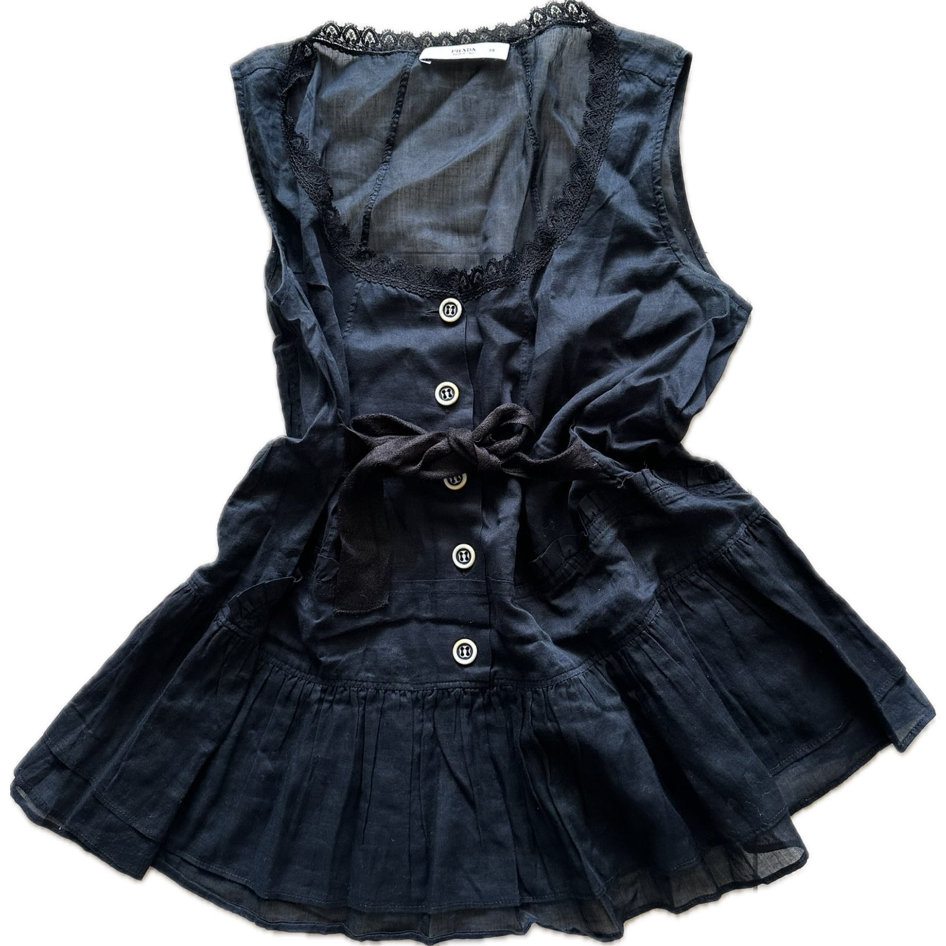 Prada Scoop Neck Peplum Button Down Sless Blouse