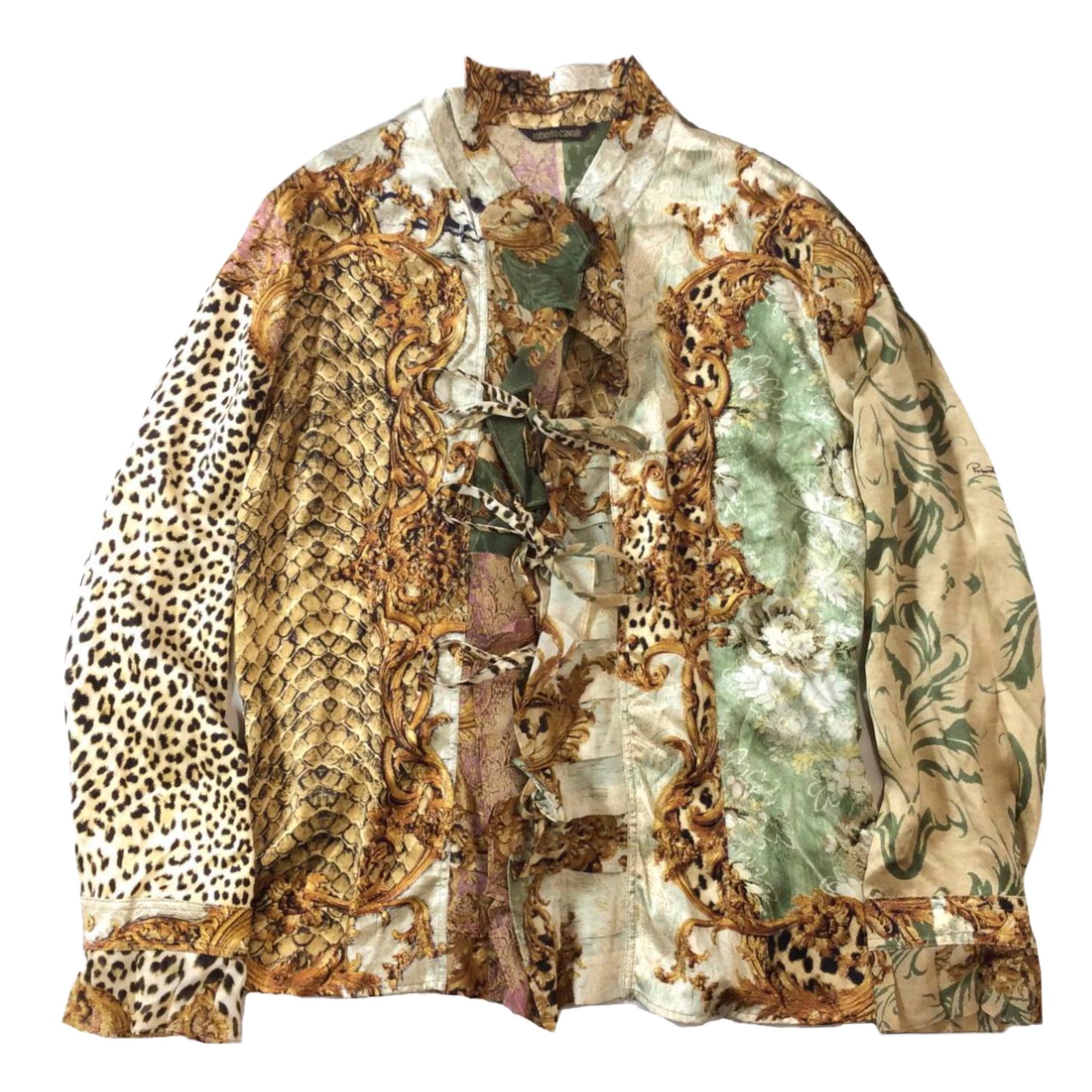Roberto Cavalli Multi Print Ruffle LS Blouse w Tie