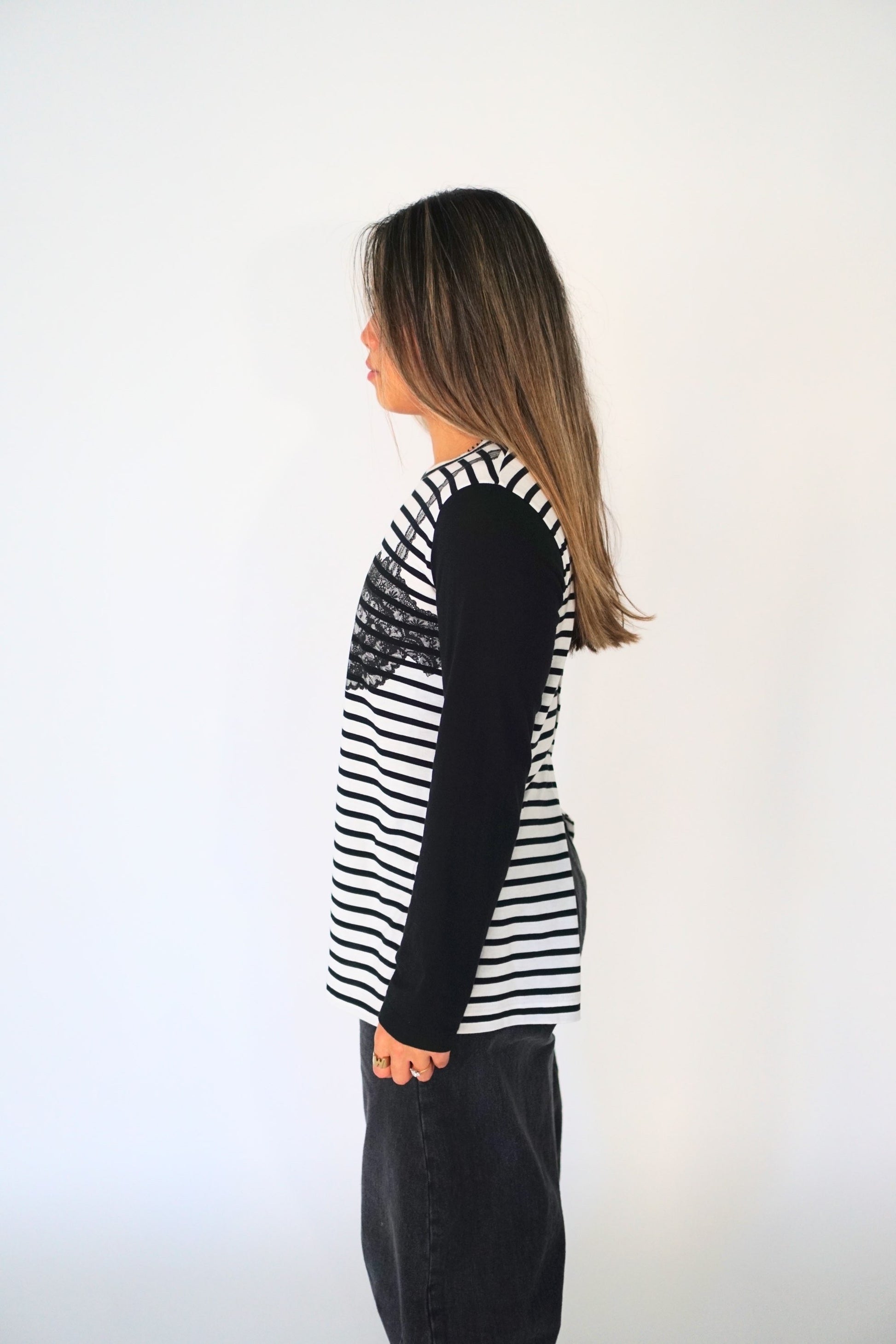 Tricot Comme Des Garcons Lace Bra Graphic Print Stripe LS Tee