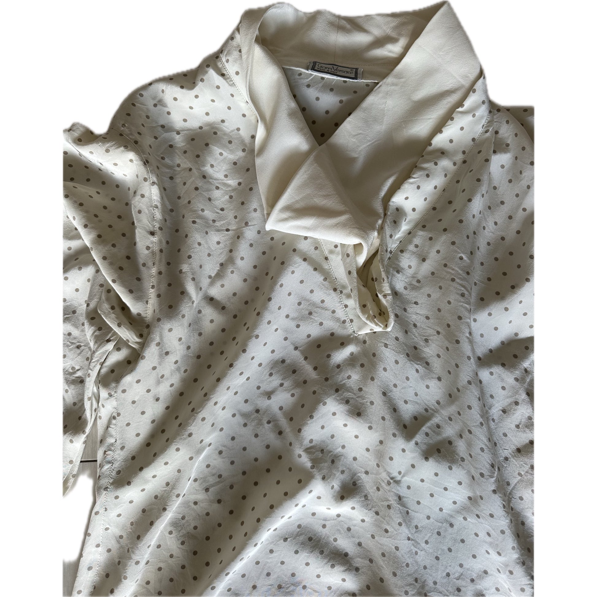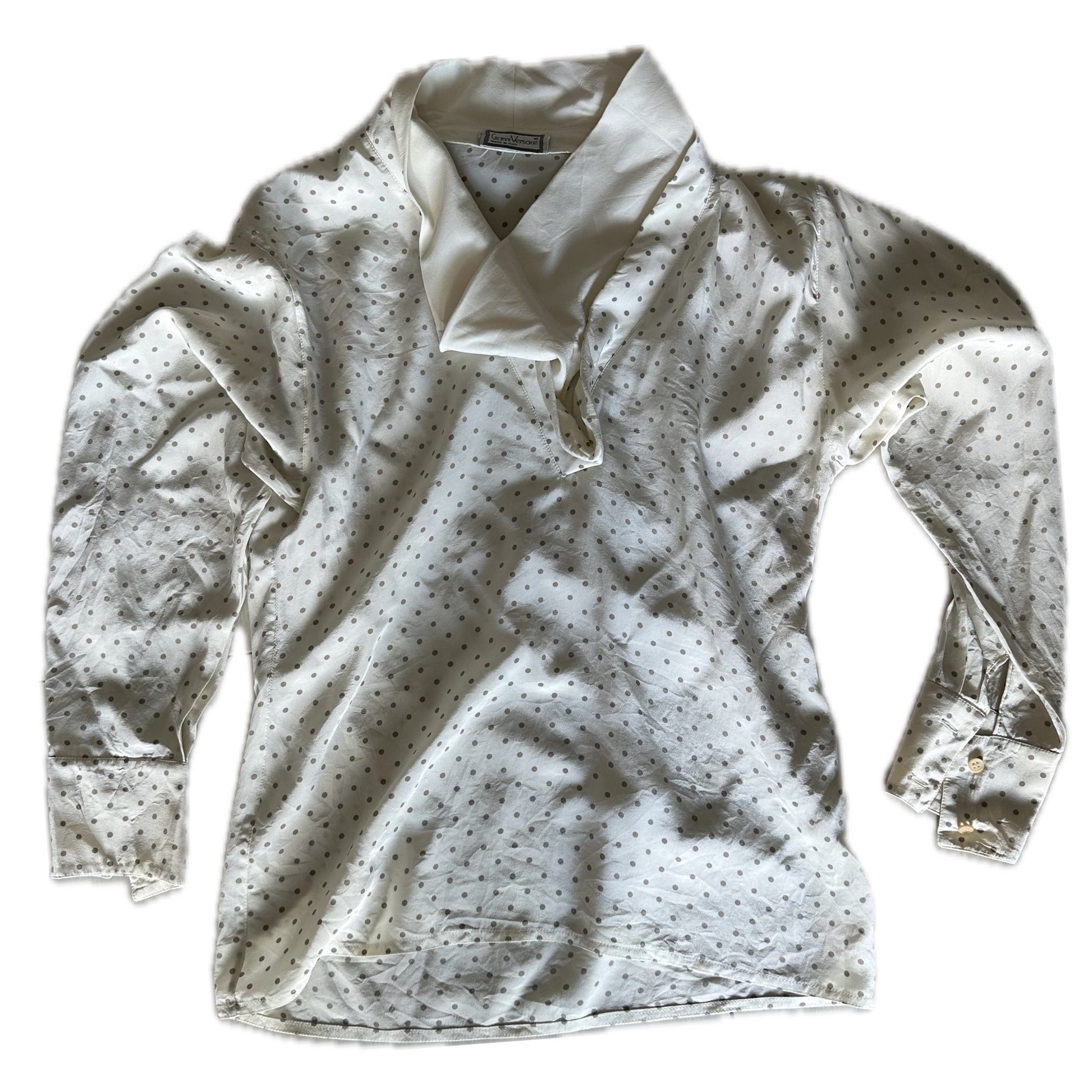 Gianni Versace Polka Dot Silk LS Cowl Neck Blouse