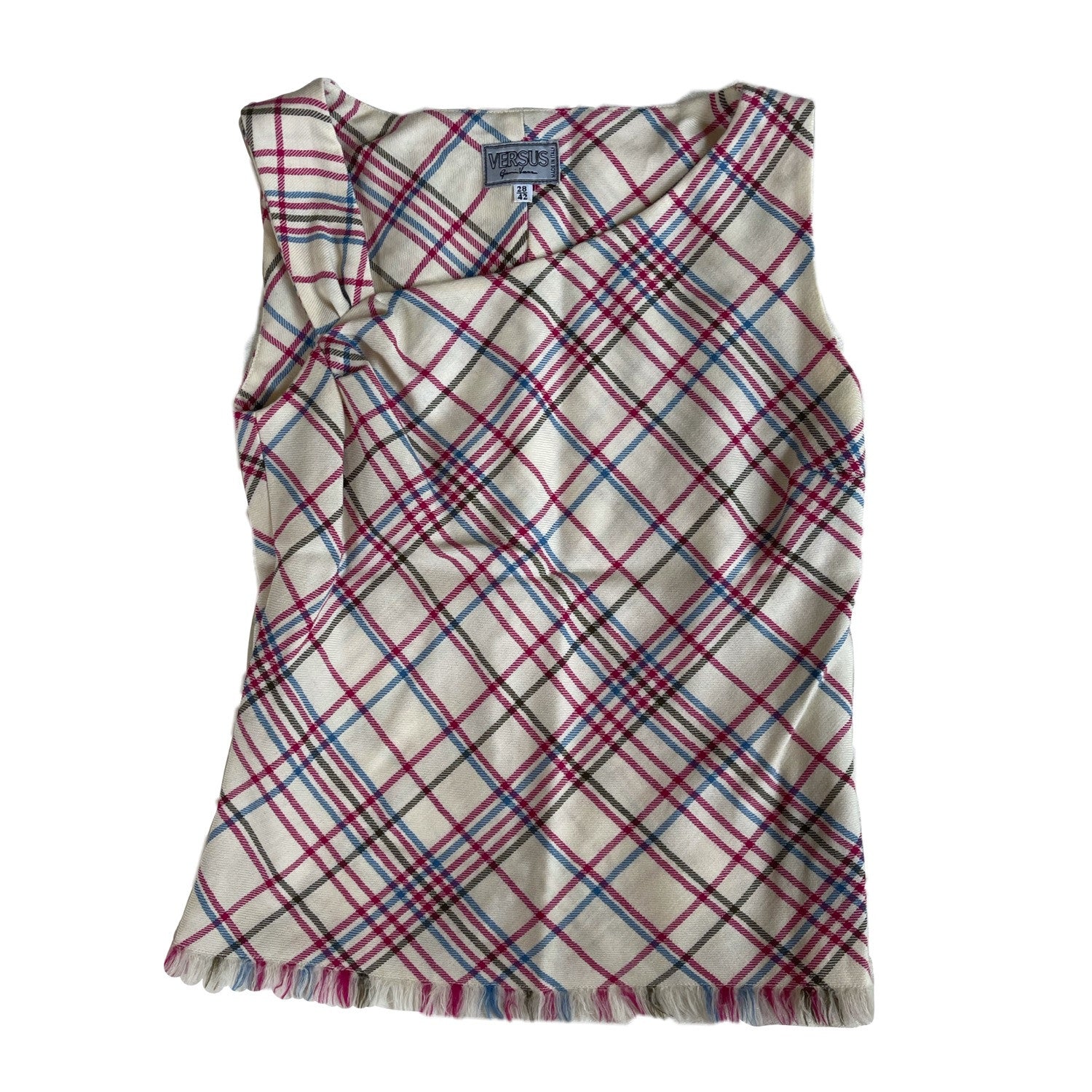 Versace Checkered Cowl Neck Frill Top/Pleated Skirt Set