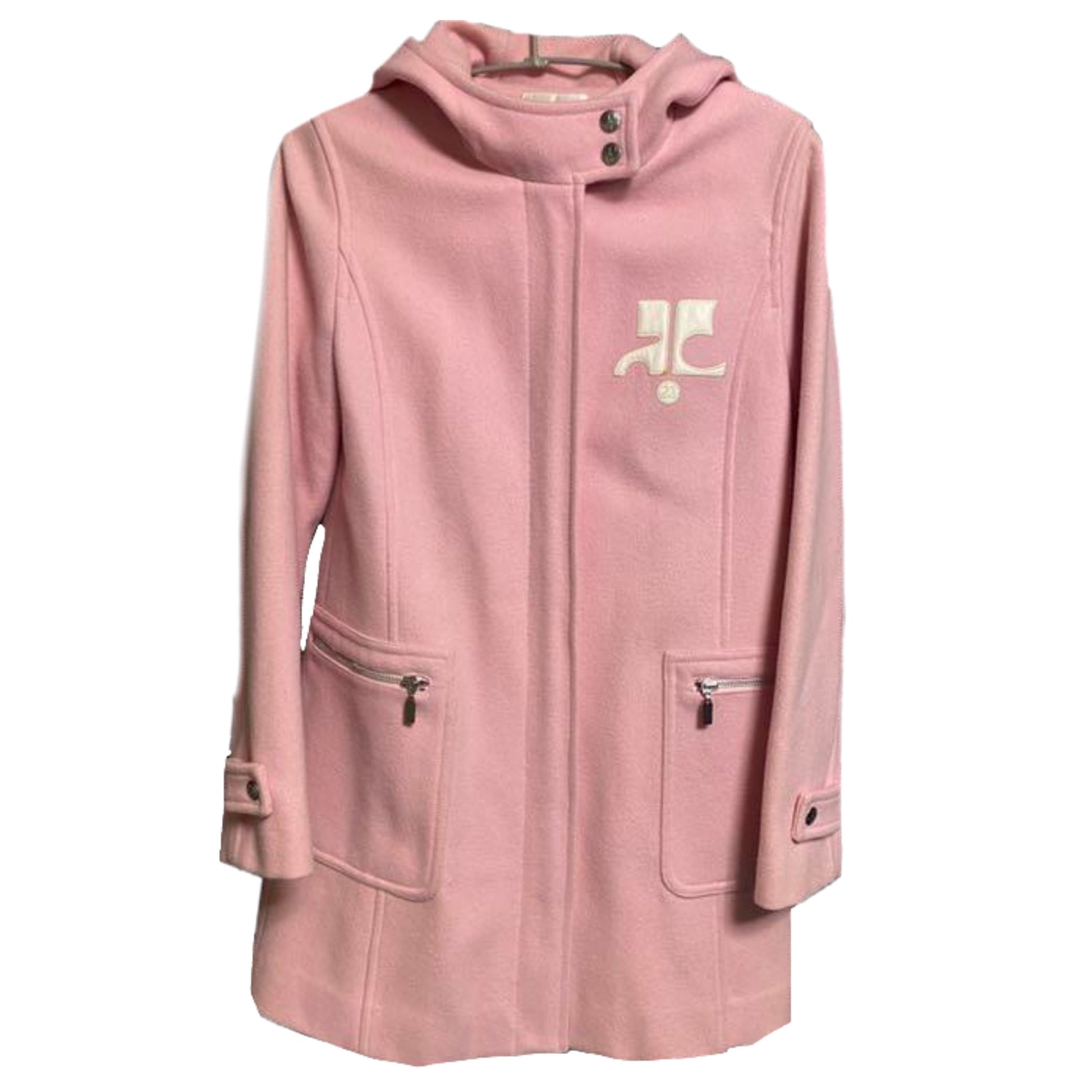 Courreges Felt Hooded Coat w Zip Pockets